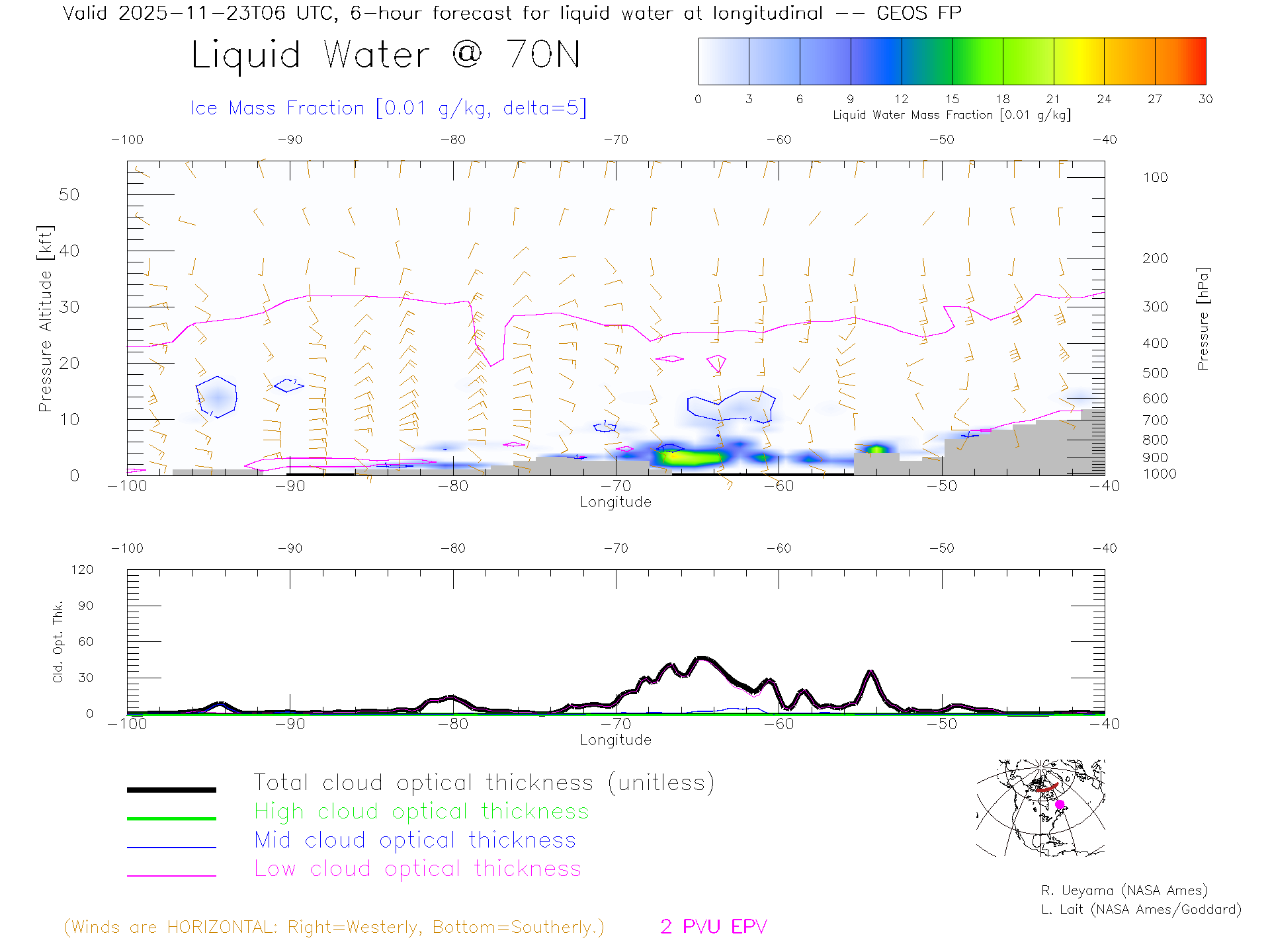 GEOS Forecast Cloud Water Content X-Section (70 N)