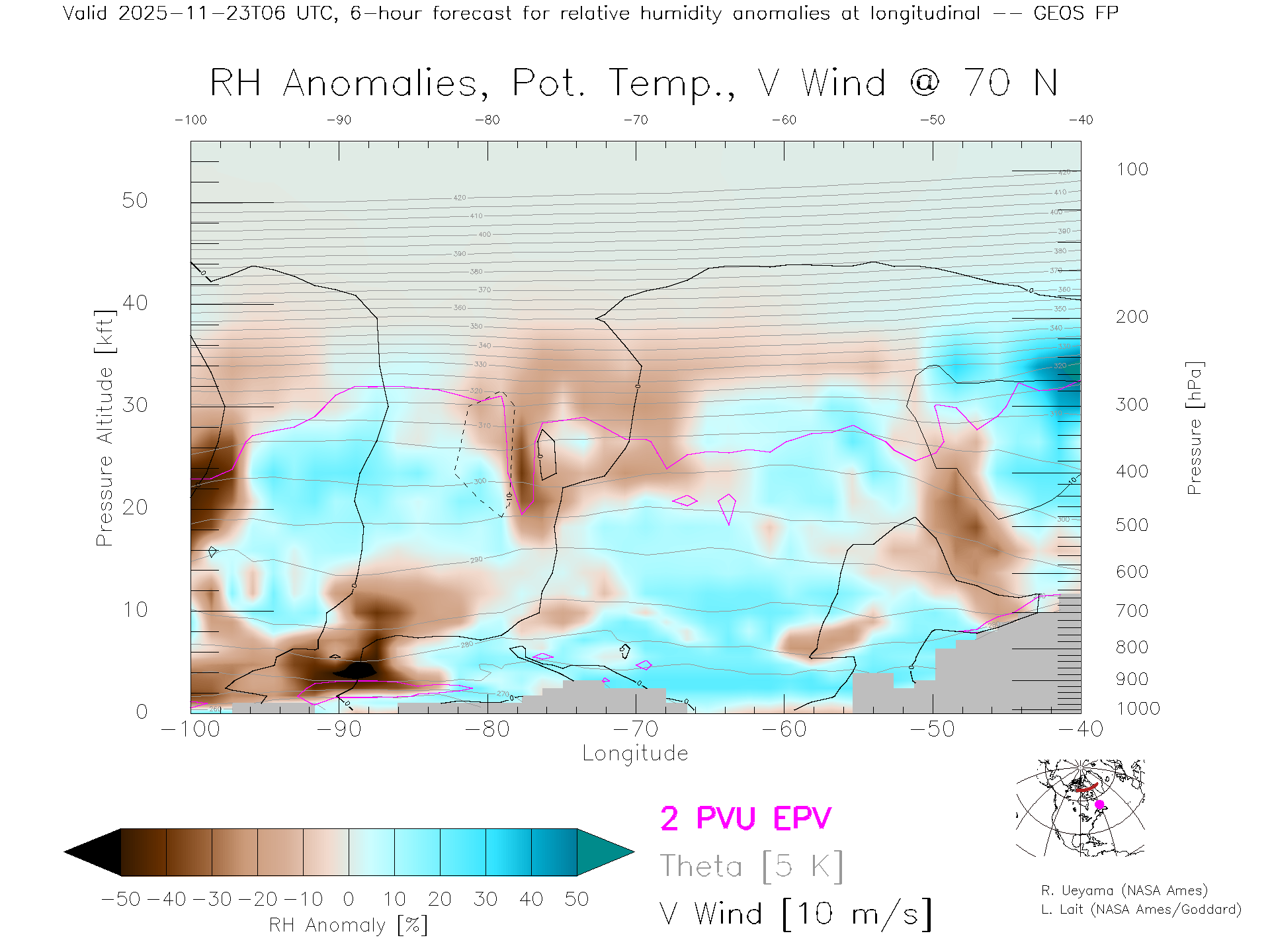 GEOS Forecast Rel. Hum. X-Section (70 N)