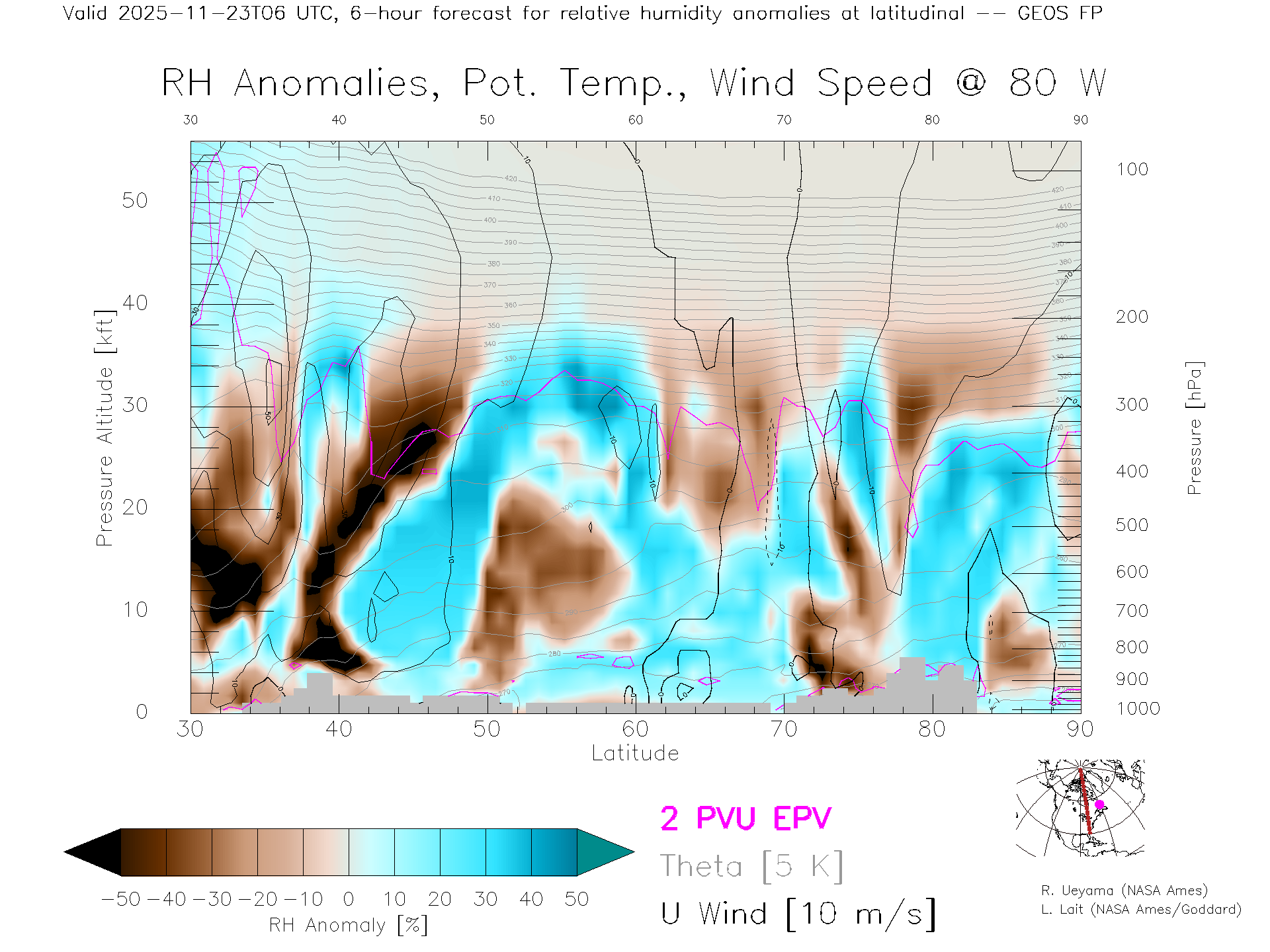 GEOS Forecast Rel. Hum. X-Section (80 W)