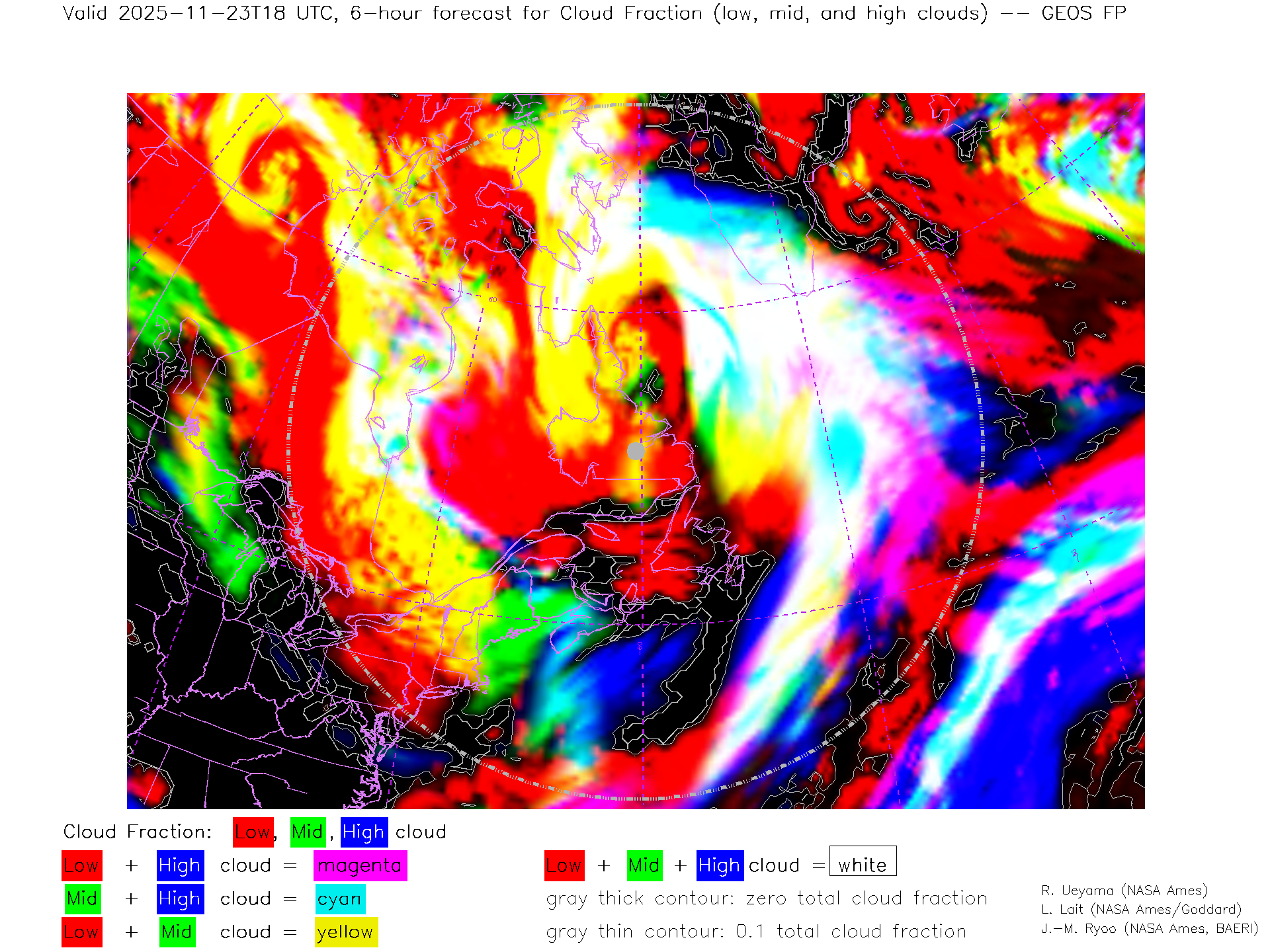 GEOS Forecast Low-, Mid- and High-level Cloud Fraction