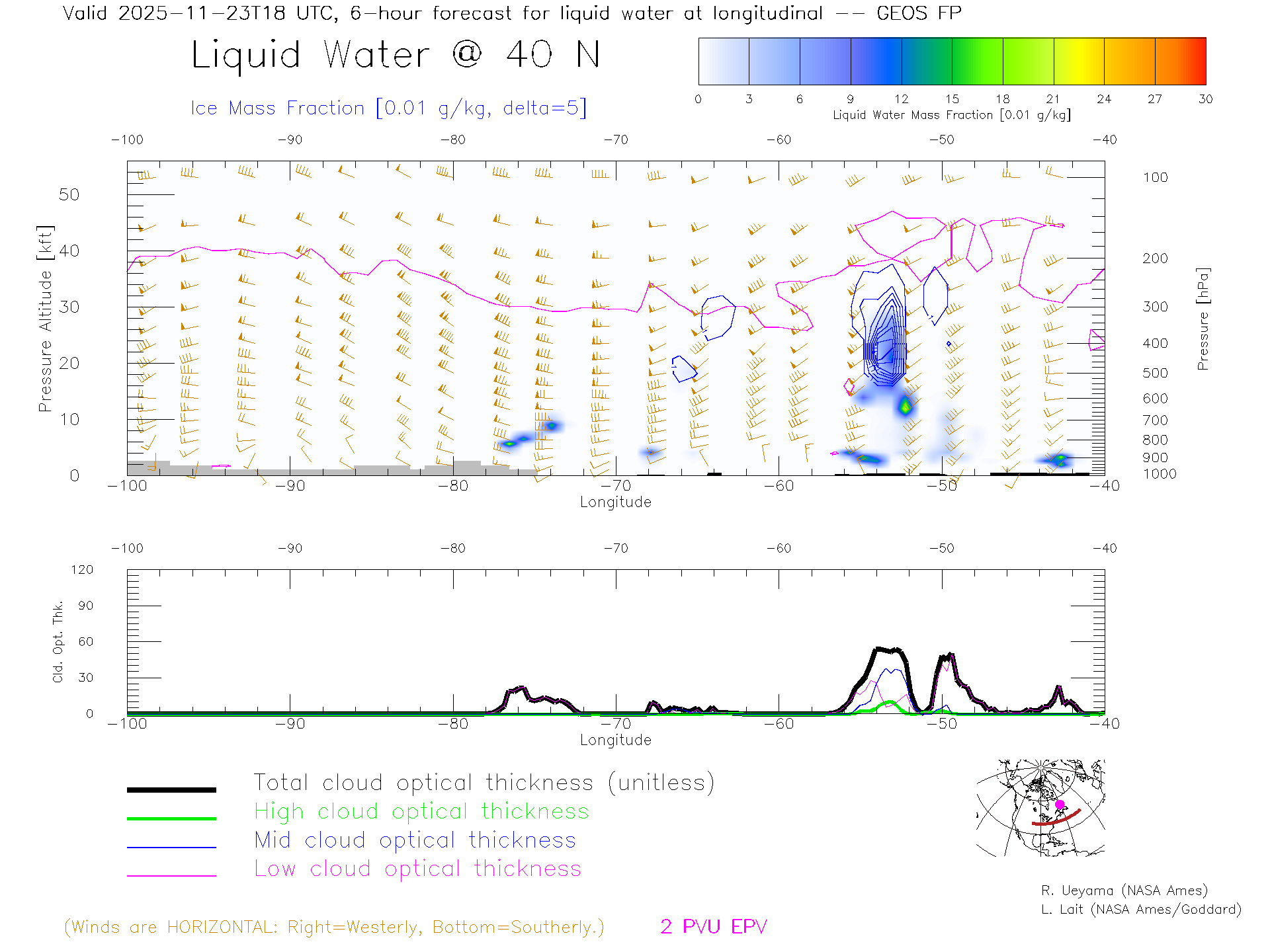 GEOS Forecast Cloud Water Content X-Section (40 N)