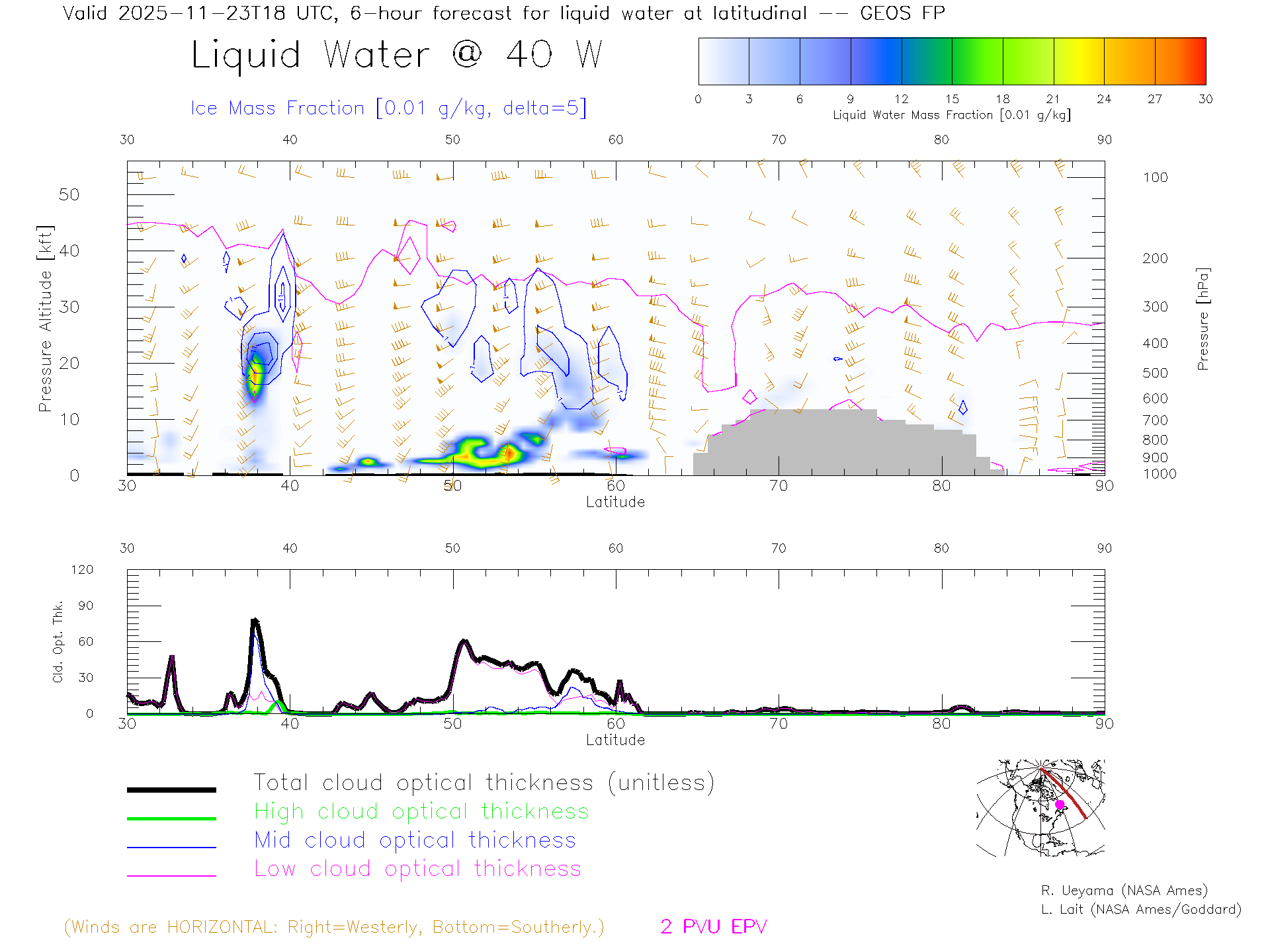 GEOS Forecast Cloud Water Content X-Section (40 W)