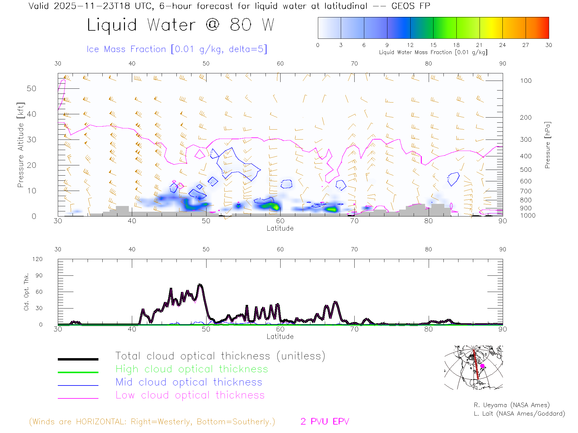 GEOS Forecast Cloud Water Content X-Section (80 W)