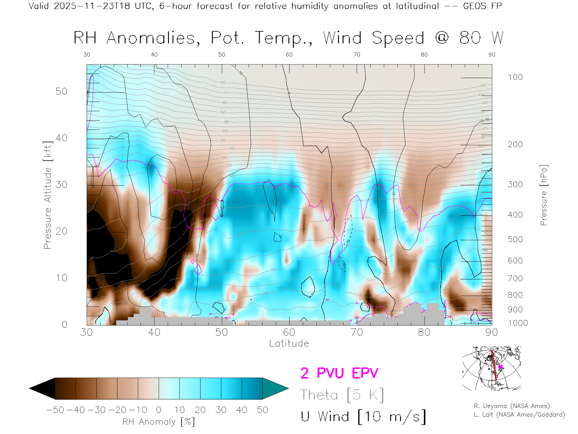 GEOS Forecast Rel. Hum. X-Section (80 W)