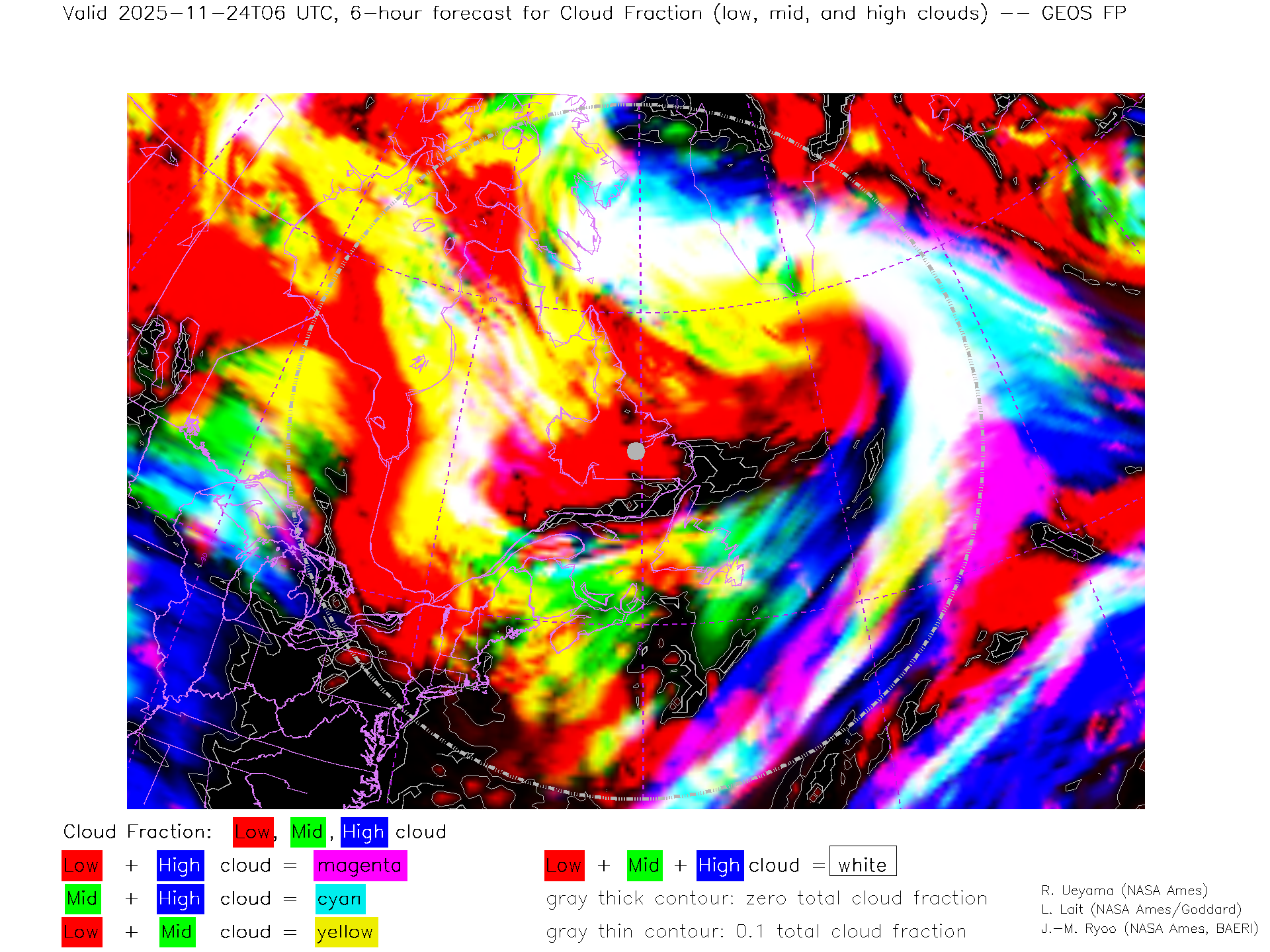 GEOS Forecast Low-, Mid- and High-level Cloud Fraction