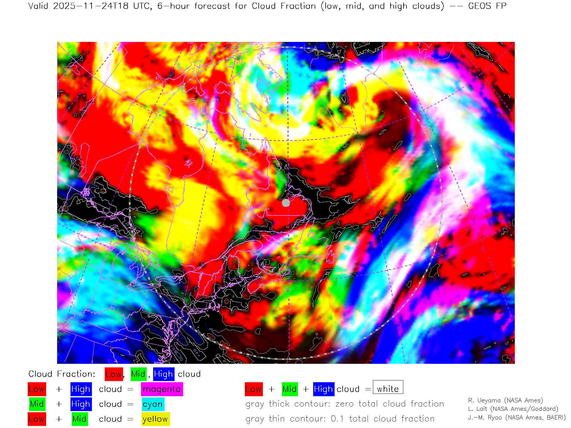 GEOS Forecast Low-, Mid- and High-level Cloud Fraction