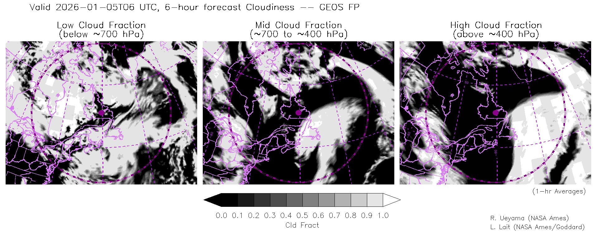 GEOS Forecast Cloud Fraction (High, Mid, Low)
