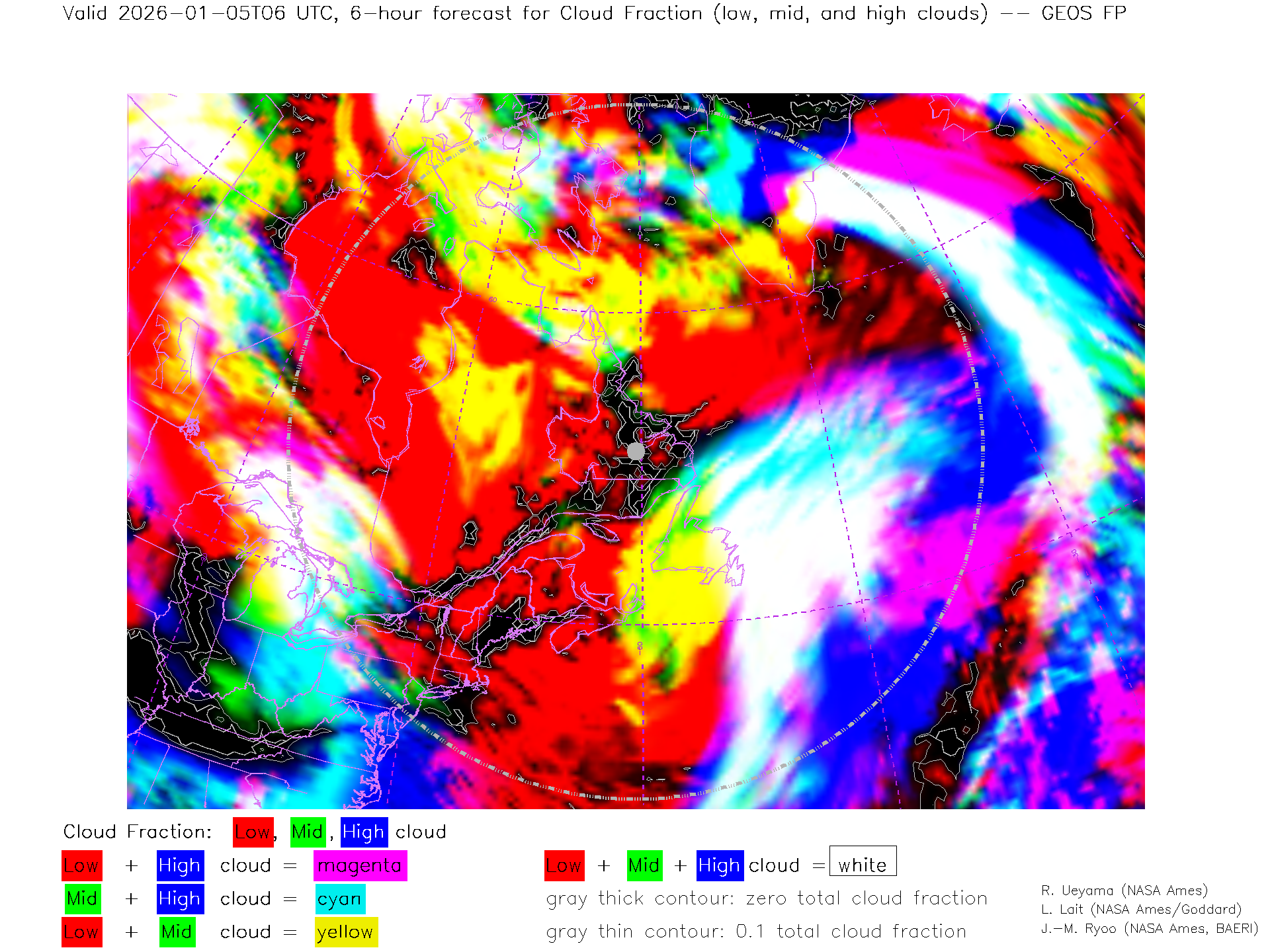 GEOS Forecast Low-, Mid- and High-level Cloud Fraction