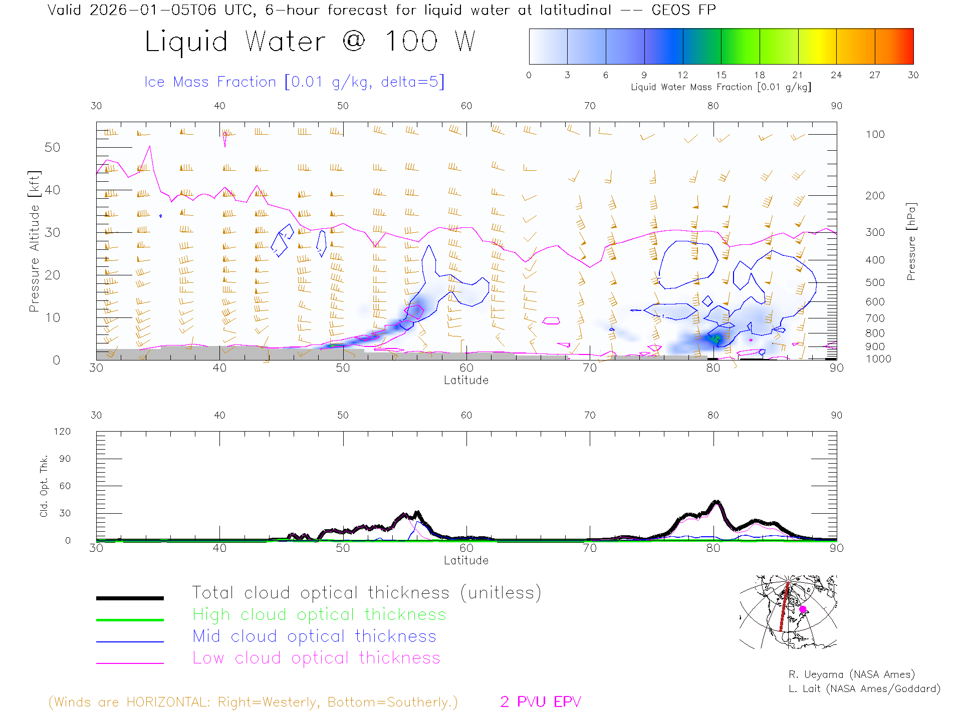 GEOS Forecast Cloud Water Content X-Section (100 W)