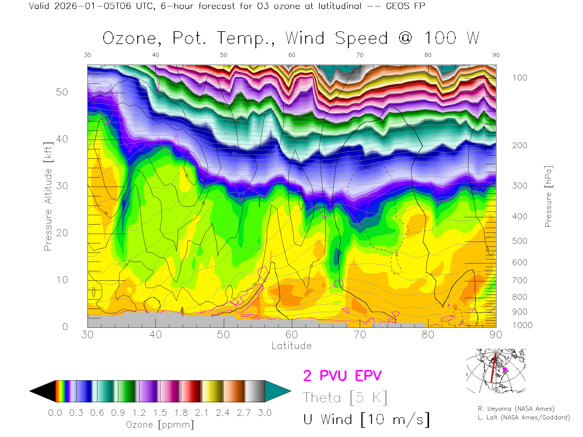 GEOS Forecast Ozone X-Section (100 W)