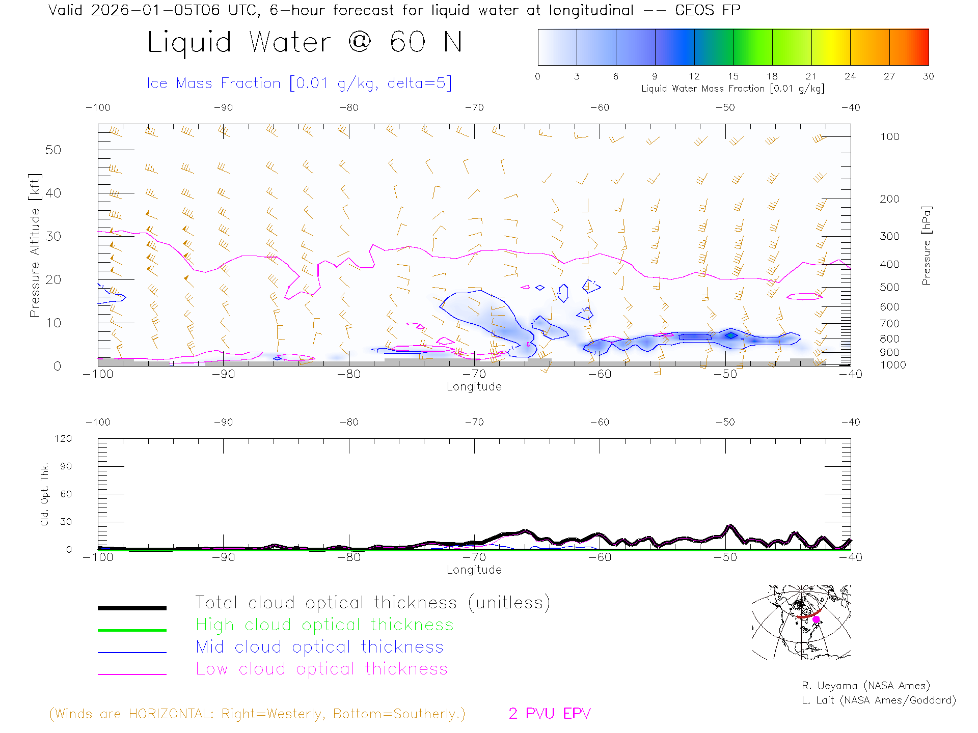 GEOS Forecast Cloud Water Content X-Section (60 N)