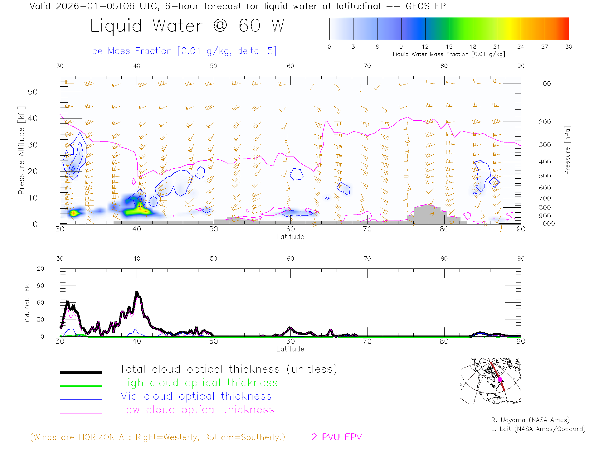 GEOS Forecast Cloud Water Content X-Section (60 W)