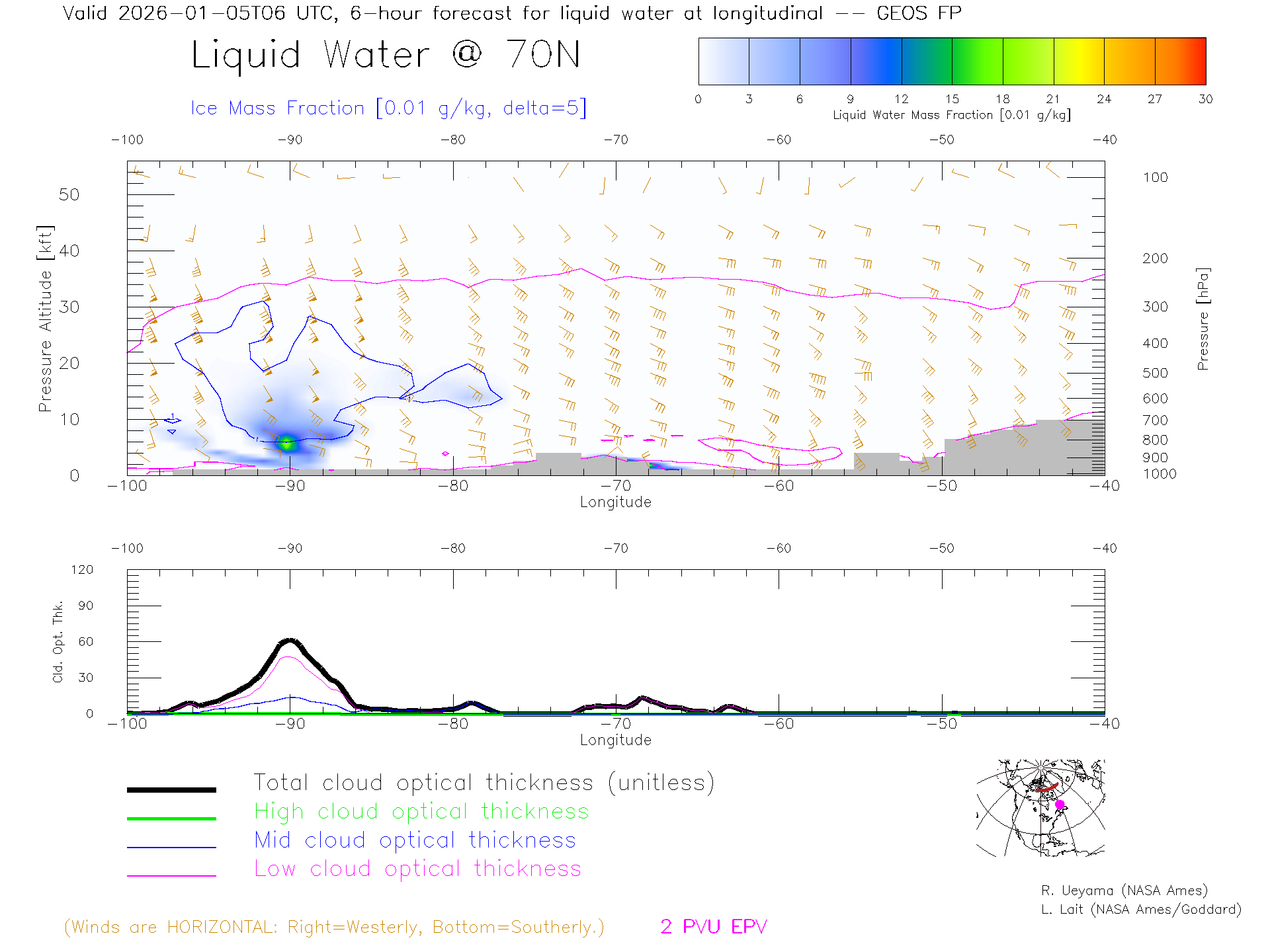 GEOS Forecast Cloud Water Content X-Section (70 N)
