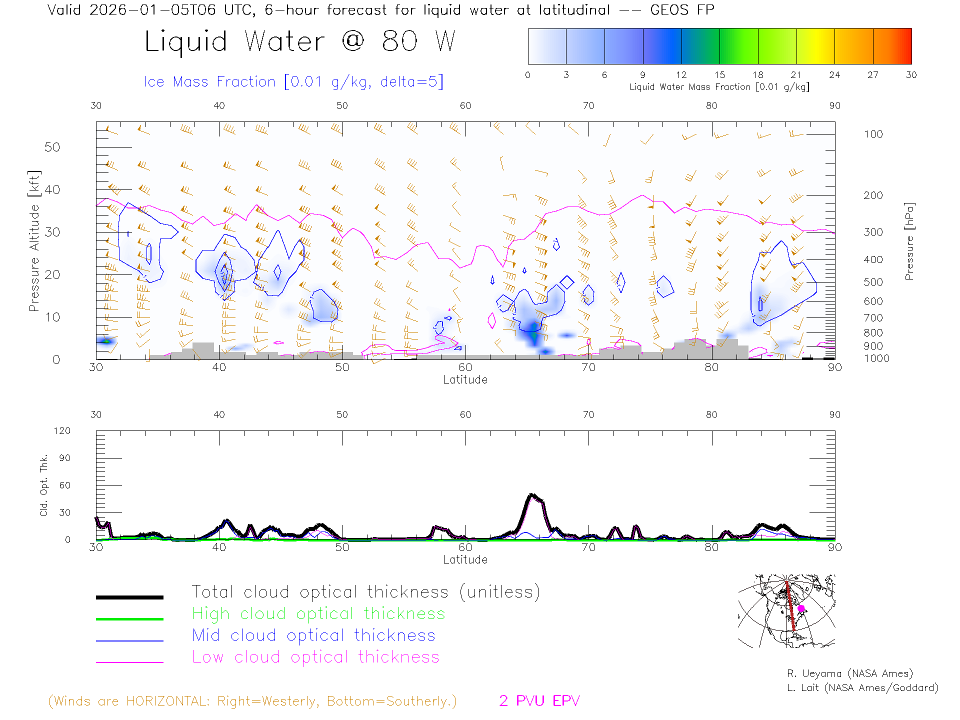 GEOS Forecast Cloud Water Content X-Section (80 W)