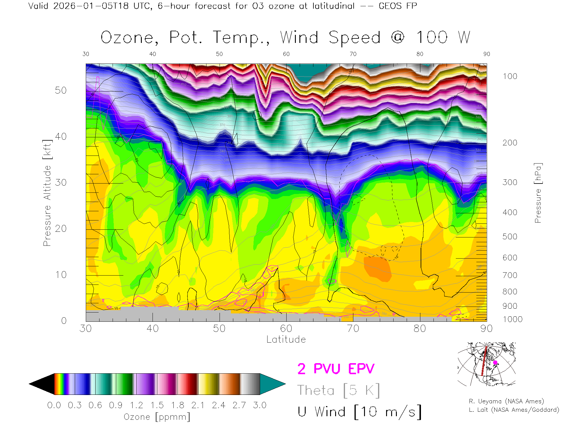 GEOS Forecast Ozone X-Section (100 W)