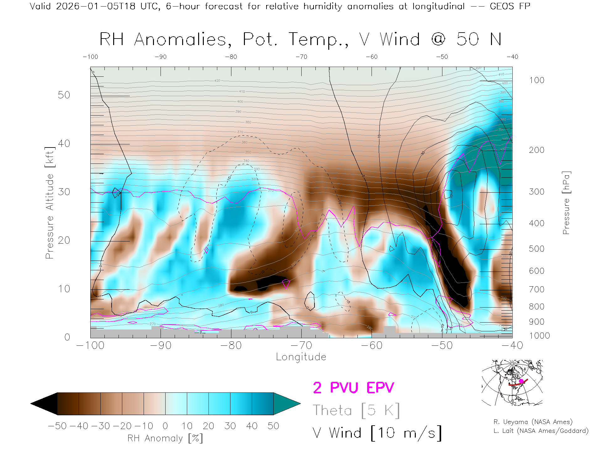 GEOS Forecast Rel. Hum. X-Section (50 N)