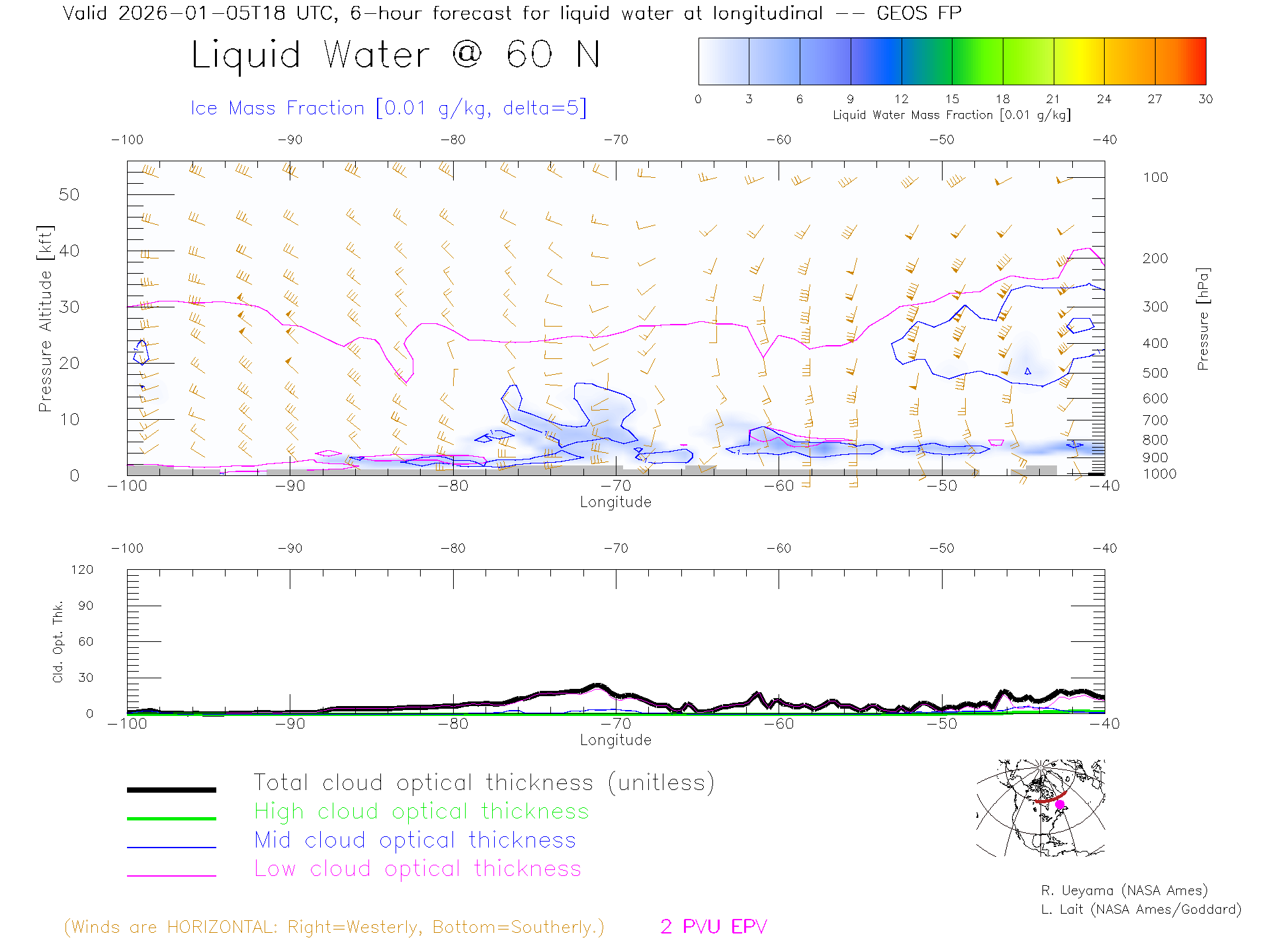 GEOS Forecast Cloud Water Content X-Section (60 N)