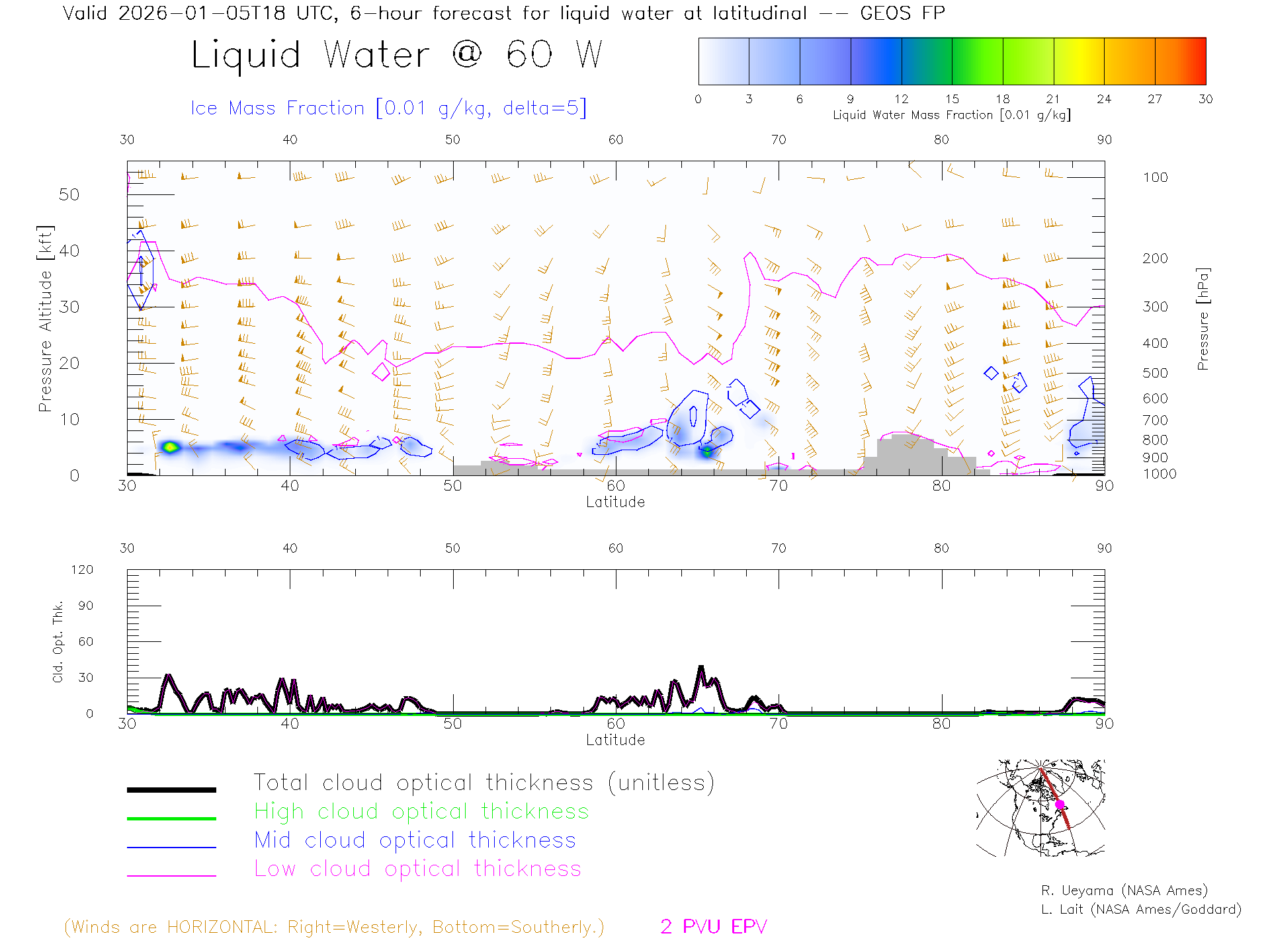 GEOS Forecast Cloud Water Content X-Section (60 W)