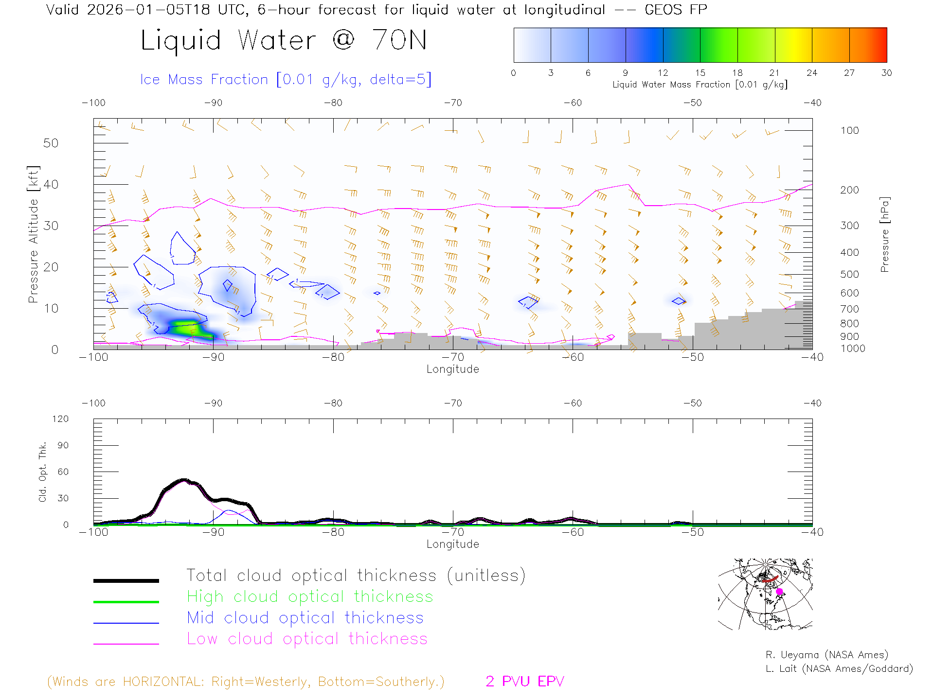 GEOS Forecast Cloud Water Content X-Section (70 N)