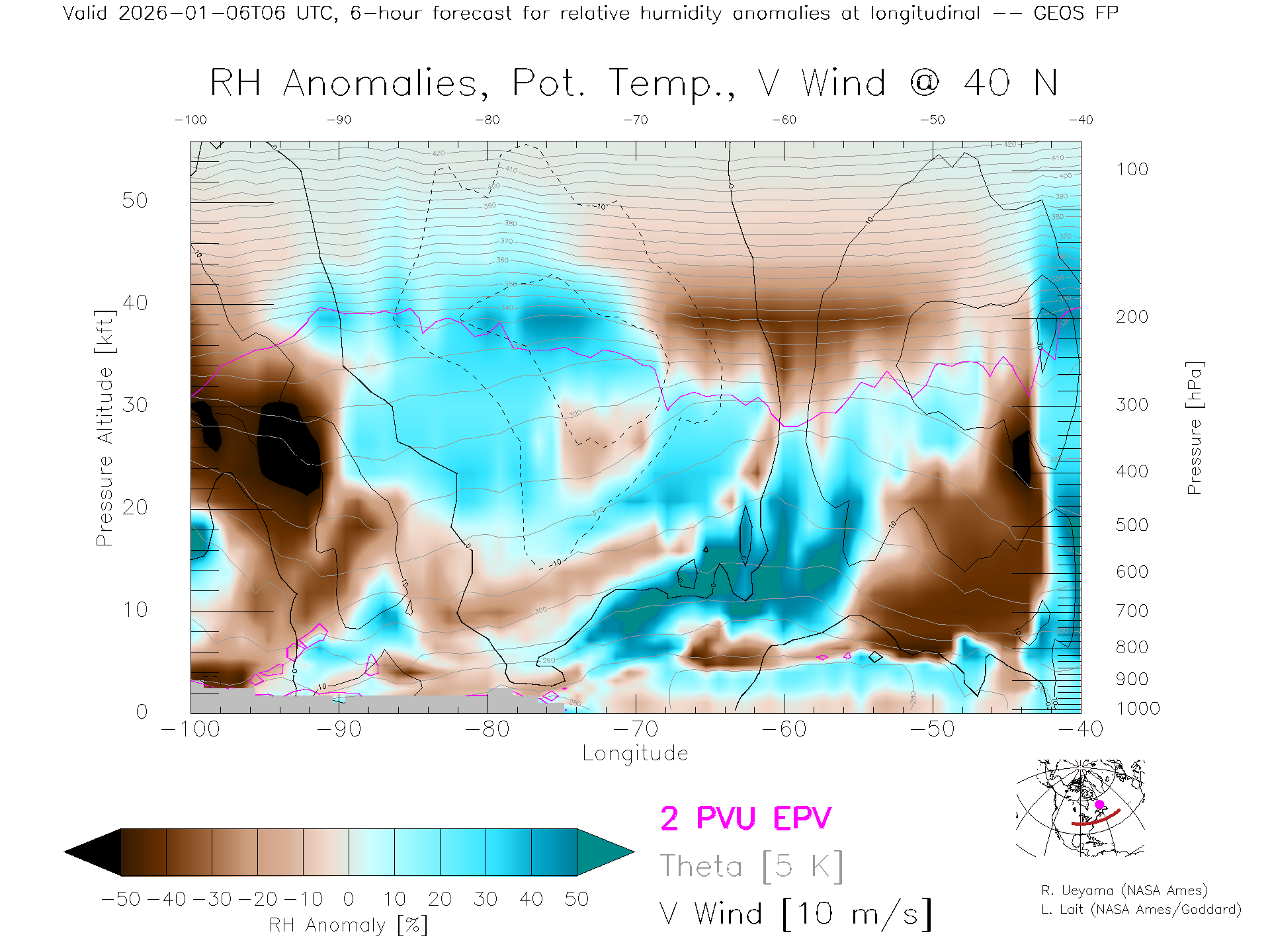 GEOS Forecast Rel. Hum. X-Section (40 N)