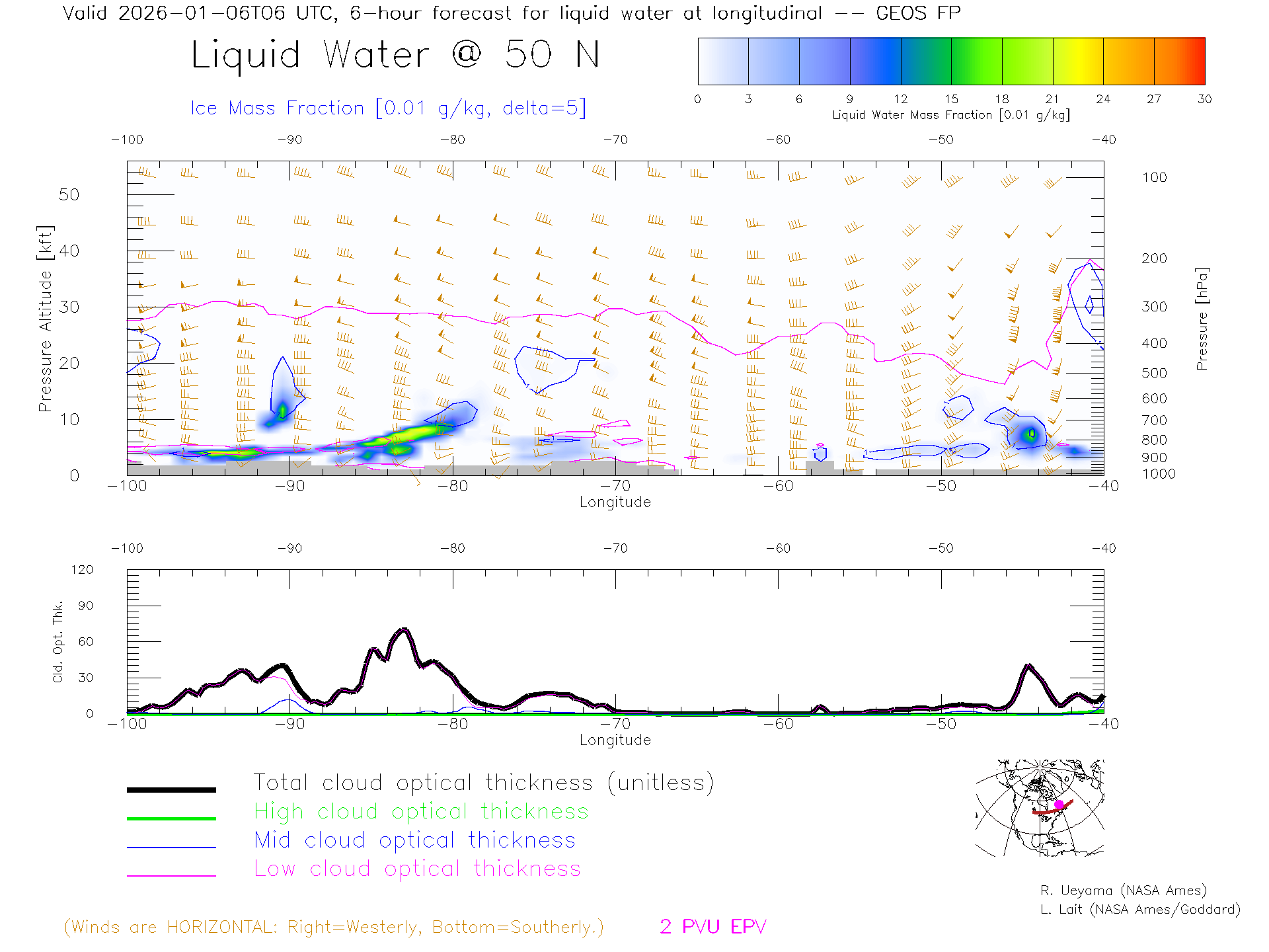 GEOS Forecast Cloud Water Content X-Section (50 N)