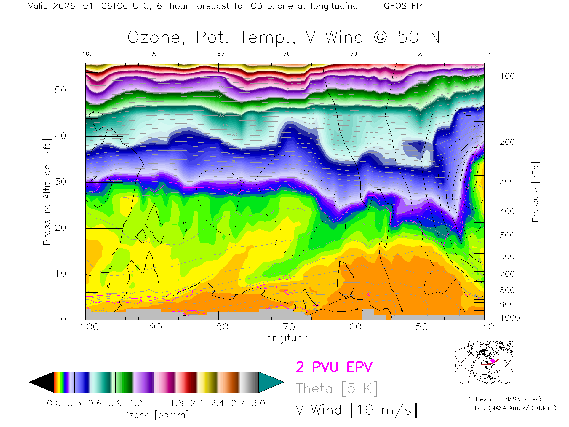 GEOS Forecast Ozone X-Section (50 N)