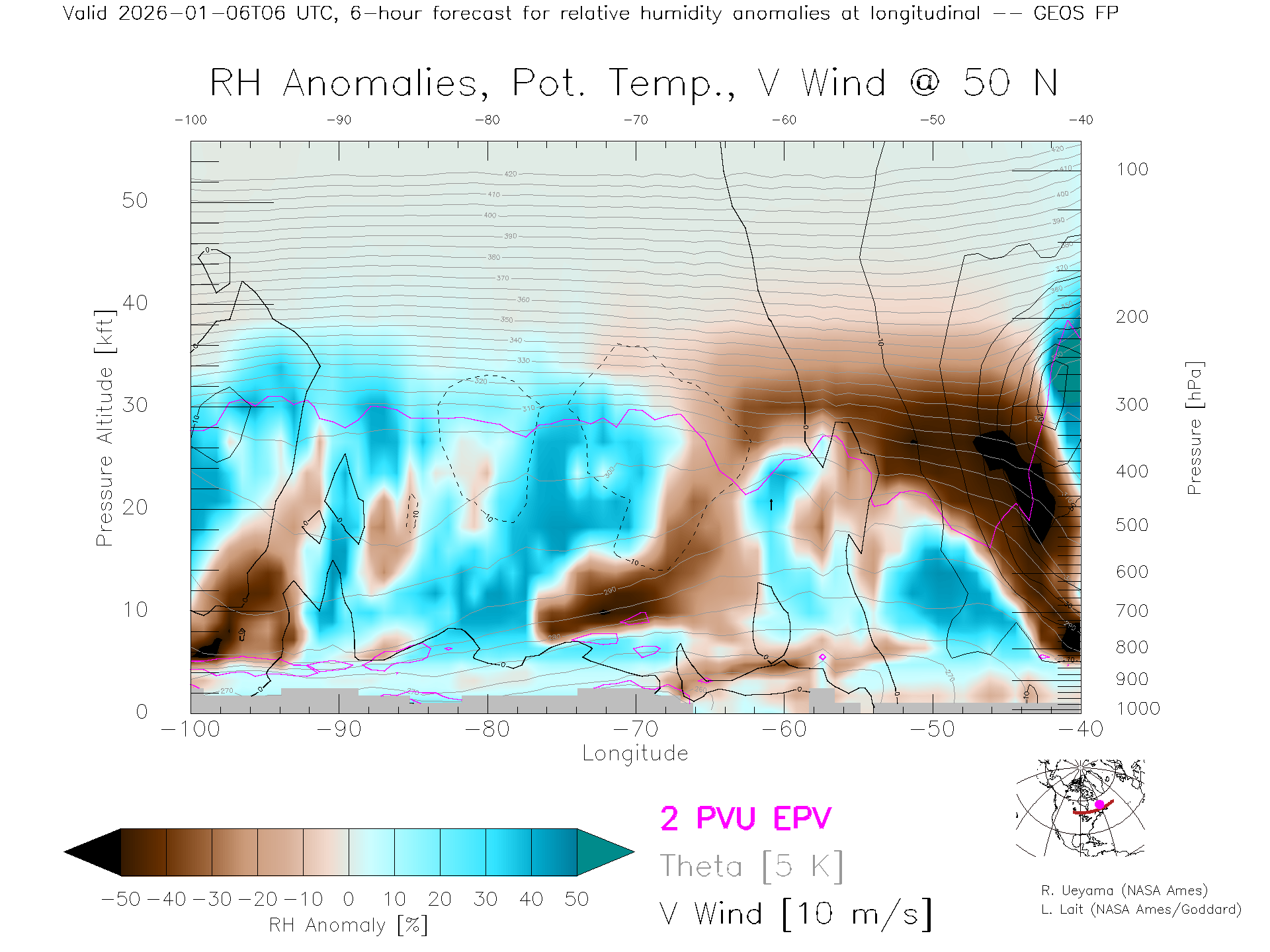 GEOS Forecast Rel. Hum. X-Section (50 N)