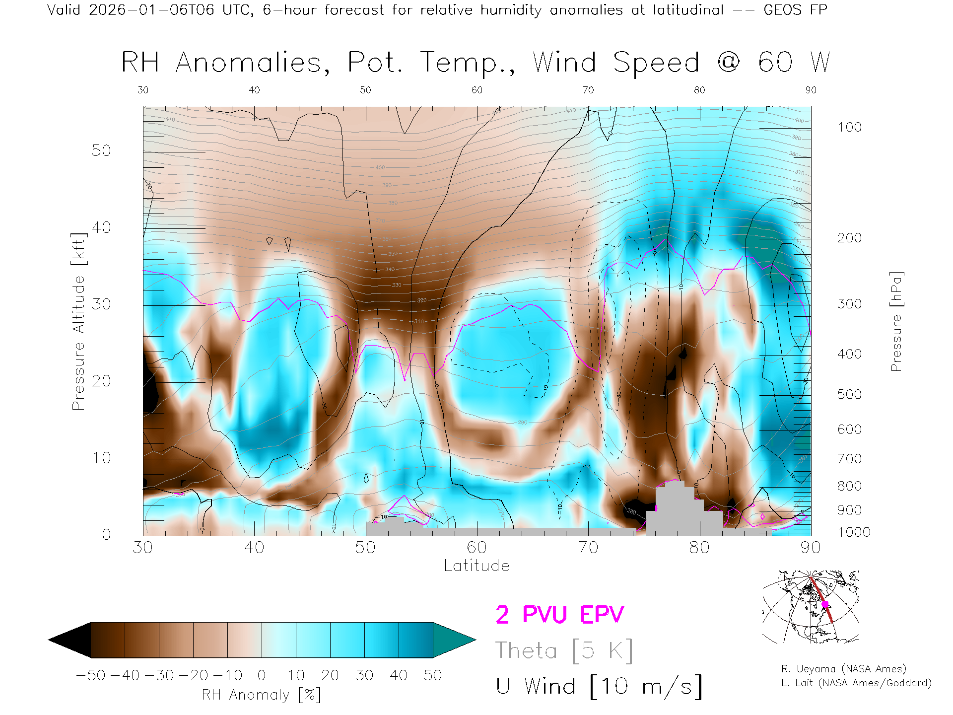 GEOS Forecast Rel. Hum. X-Section (60 W)