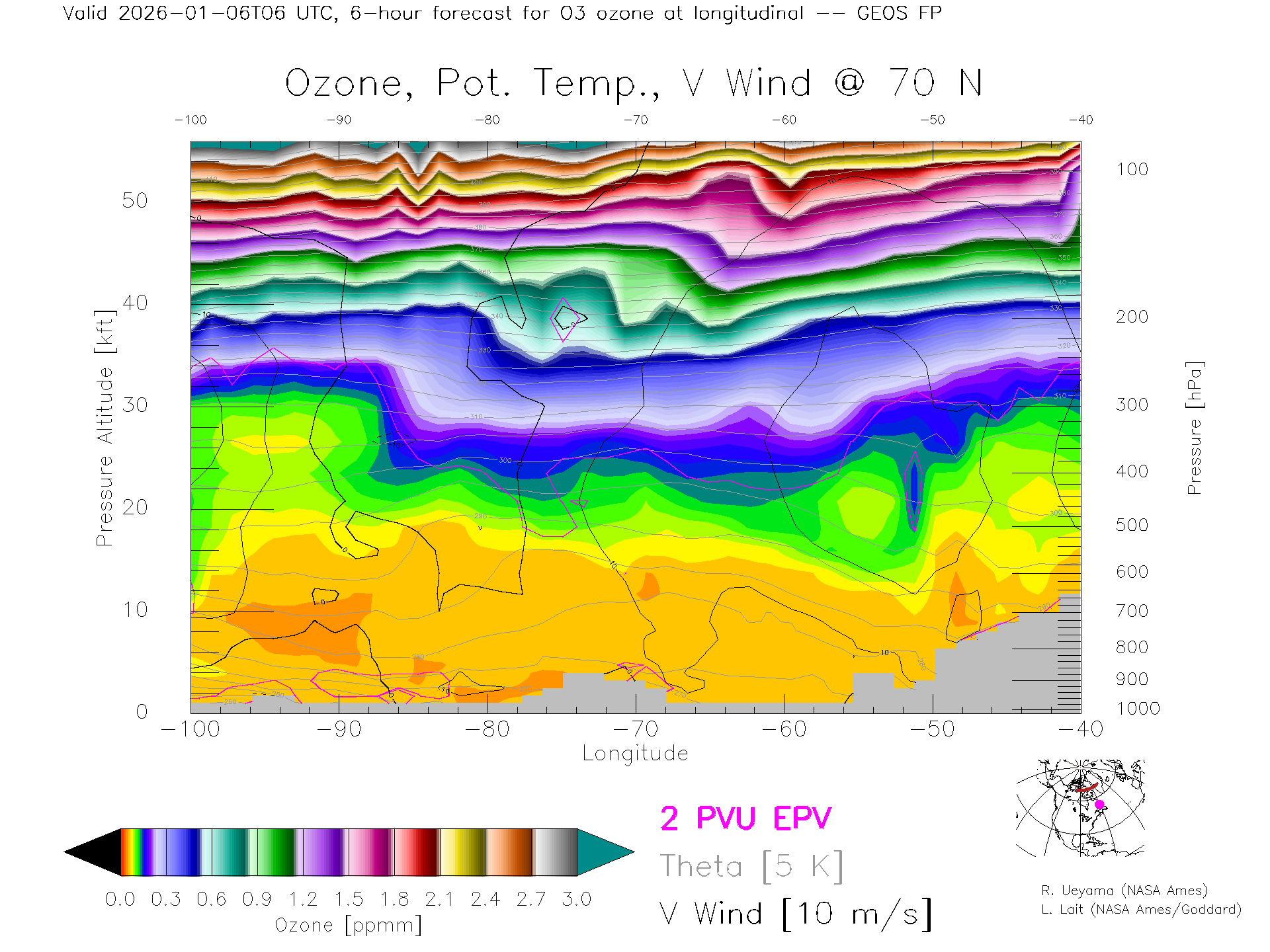GEOS Forecast Ozone X-Section (70 N)