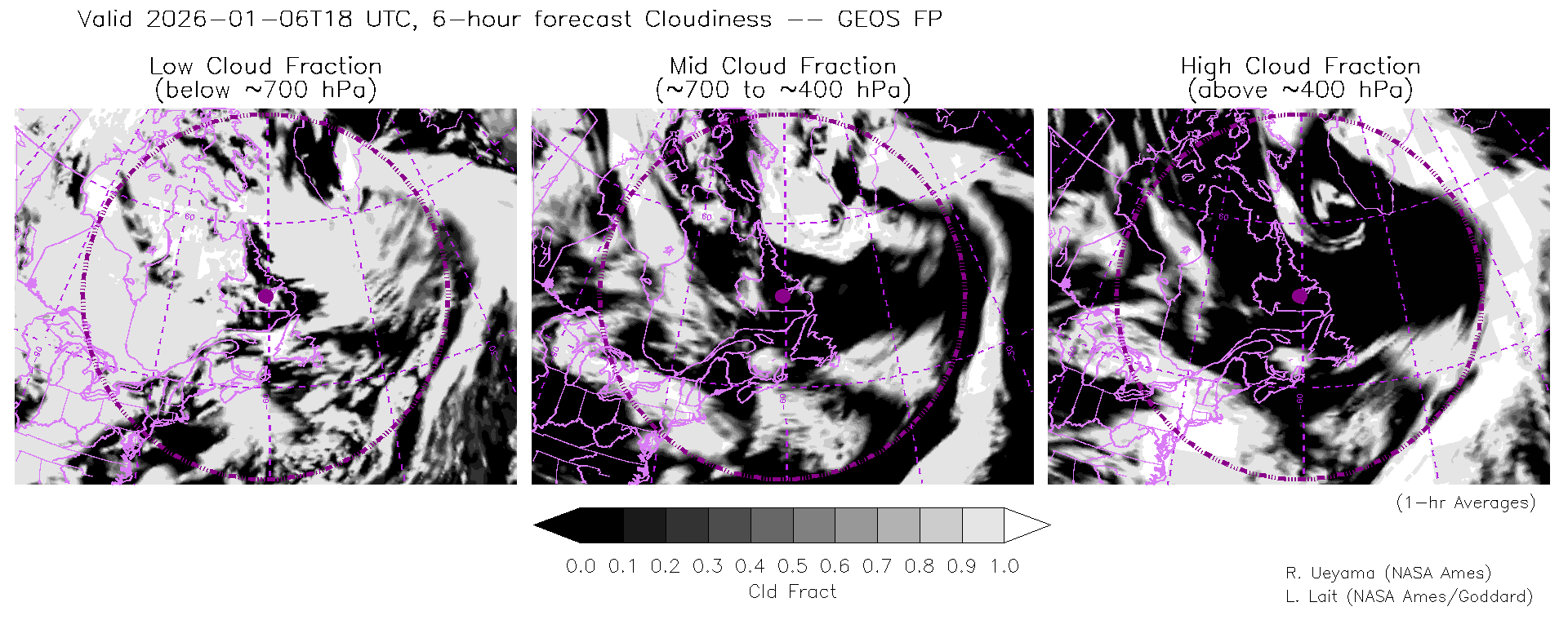 GEOS Forecast Cloud Fraction (High, Mid, Low)