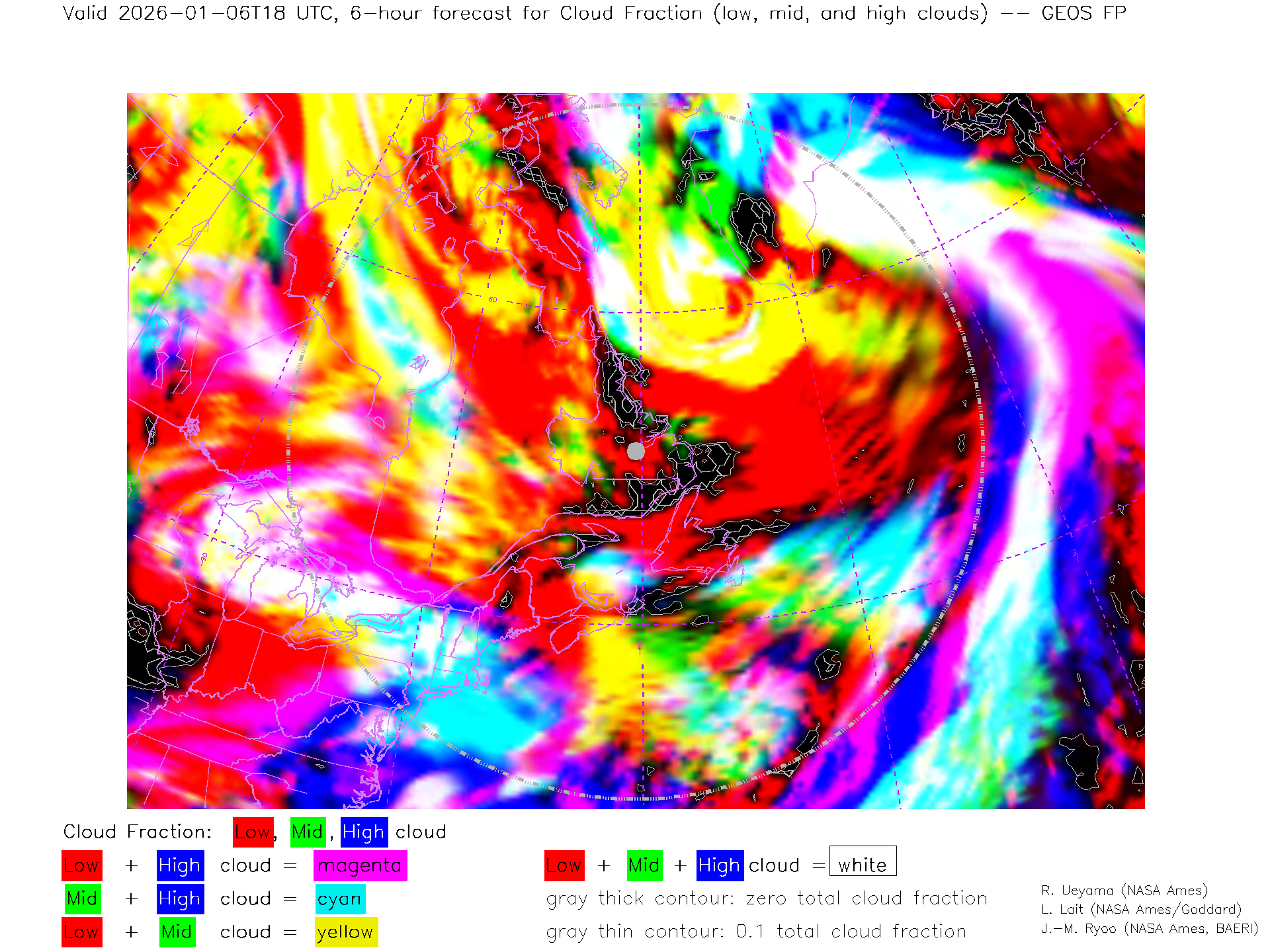 GEOS Forecast Low-, Mid- and High-level Cloud Fraction