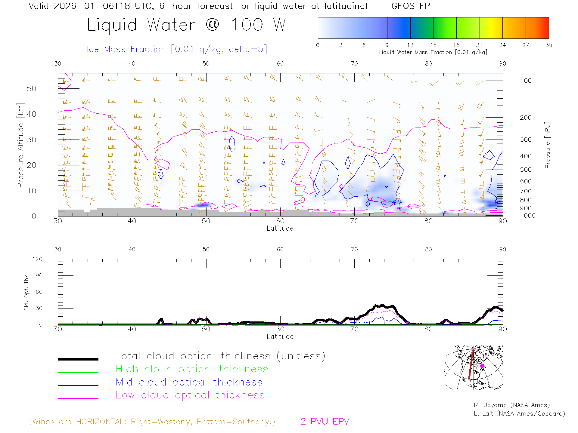 GEOS Forecast Cloud Water Content X-Section (100 W)