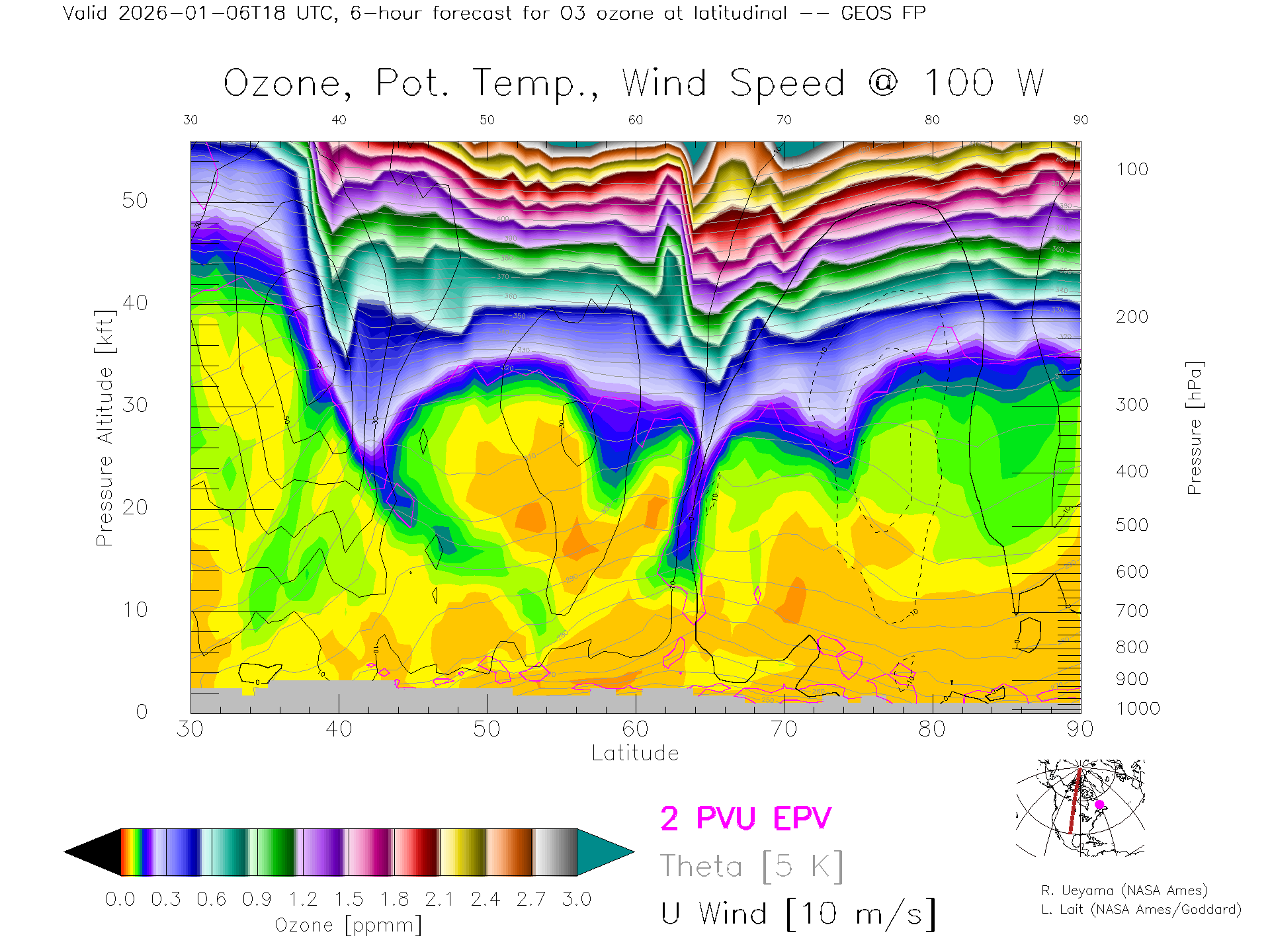 GEOS Forecast Ozone X-Section (100 W)