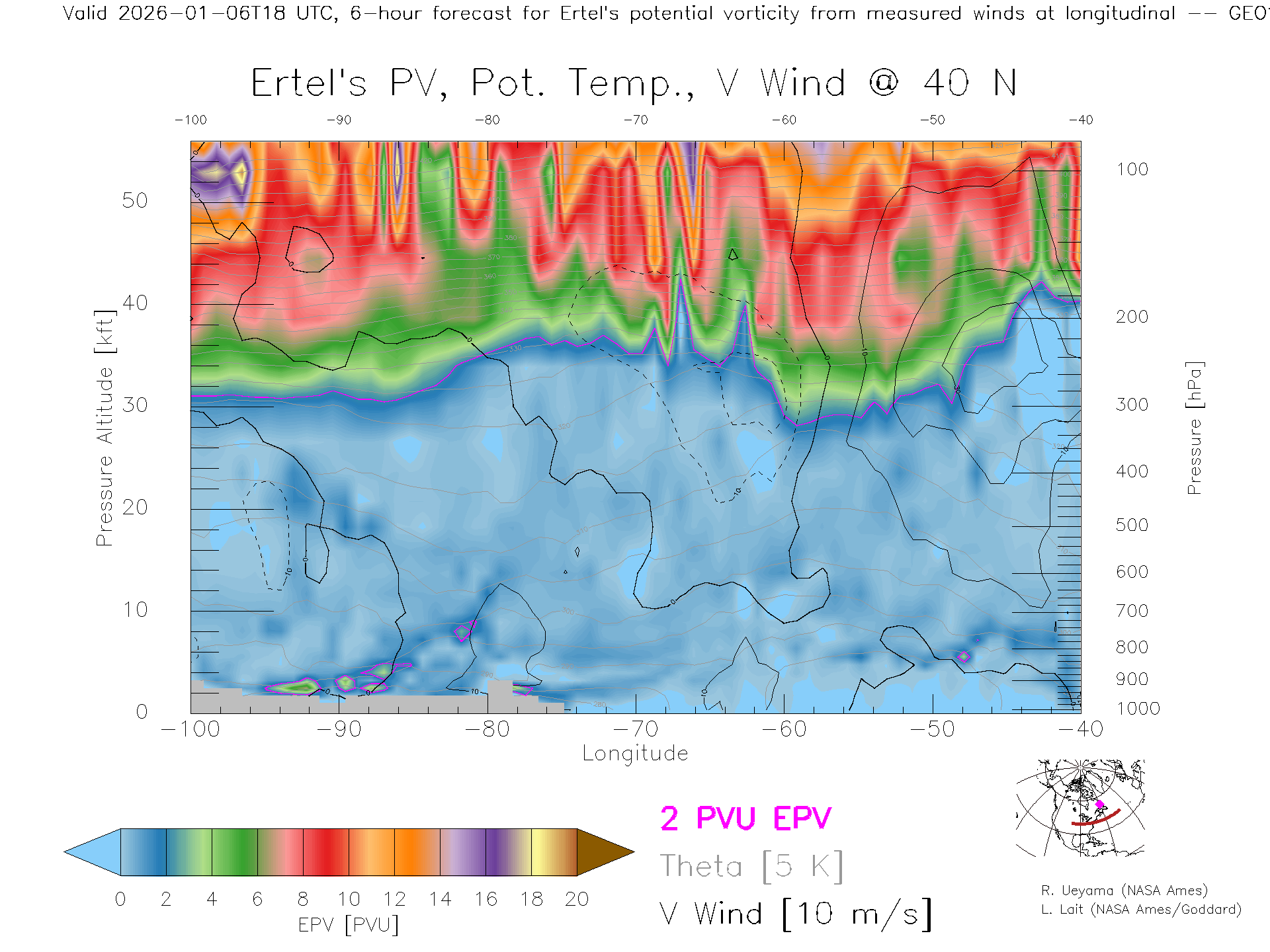 GEOS Forecast PV X-Section (40 N)