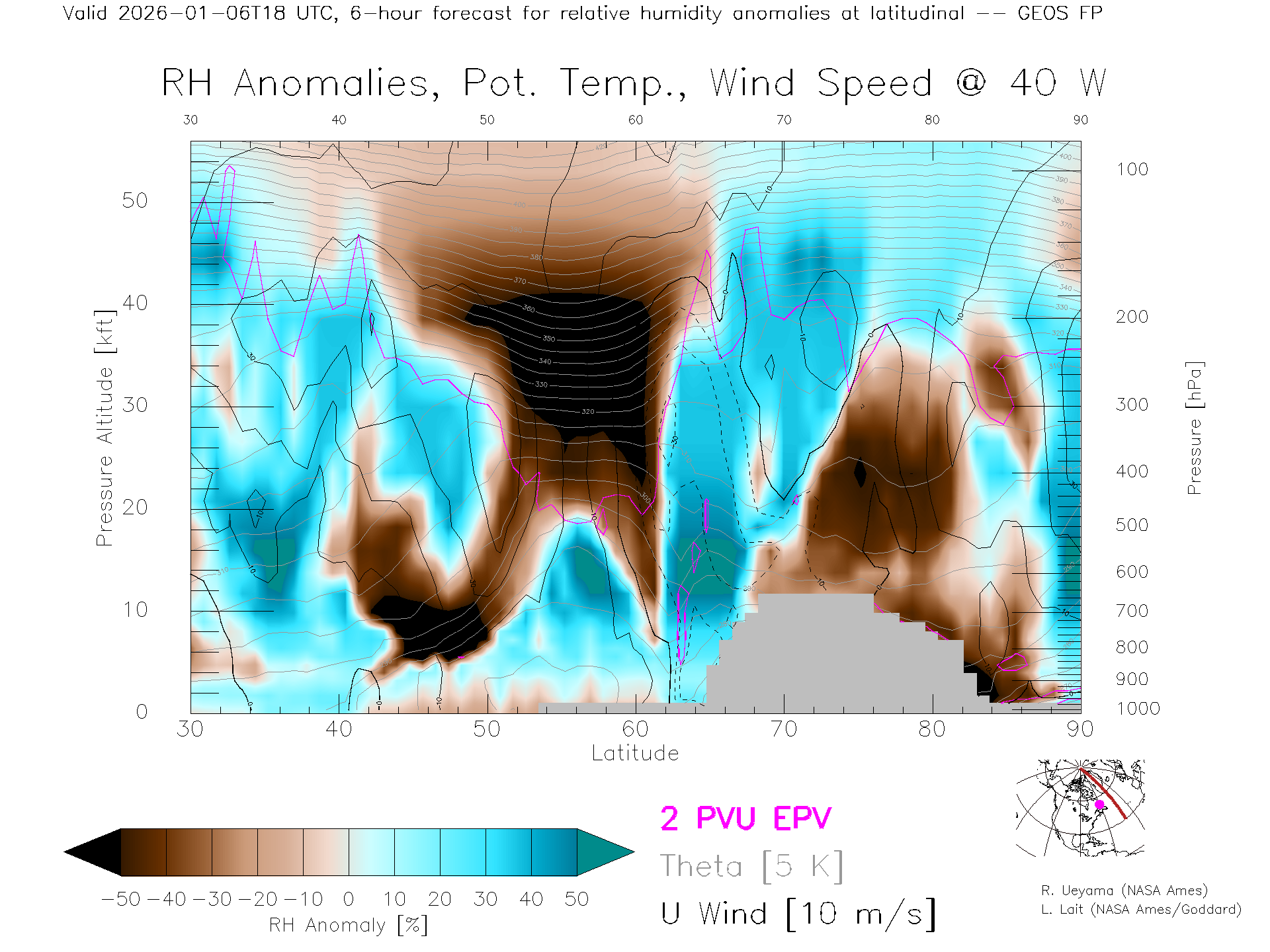GEOS Forecast Rel. Hum. X-Section (40 W)