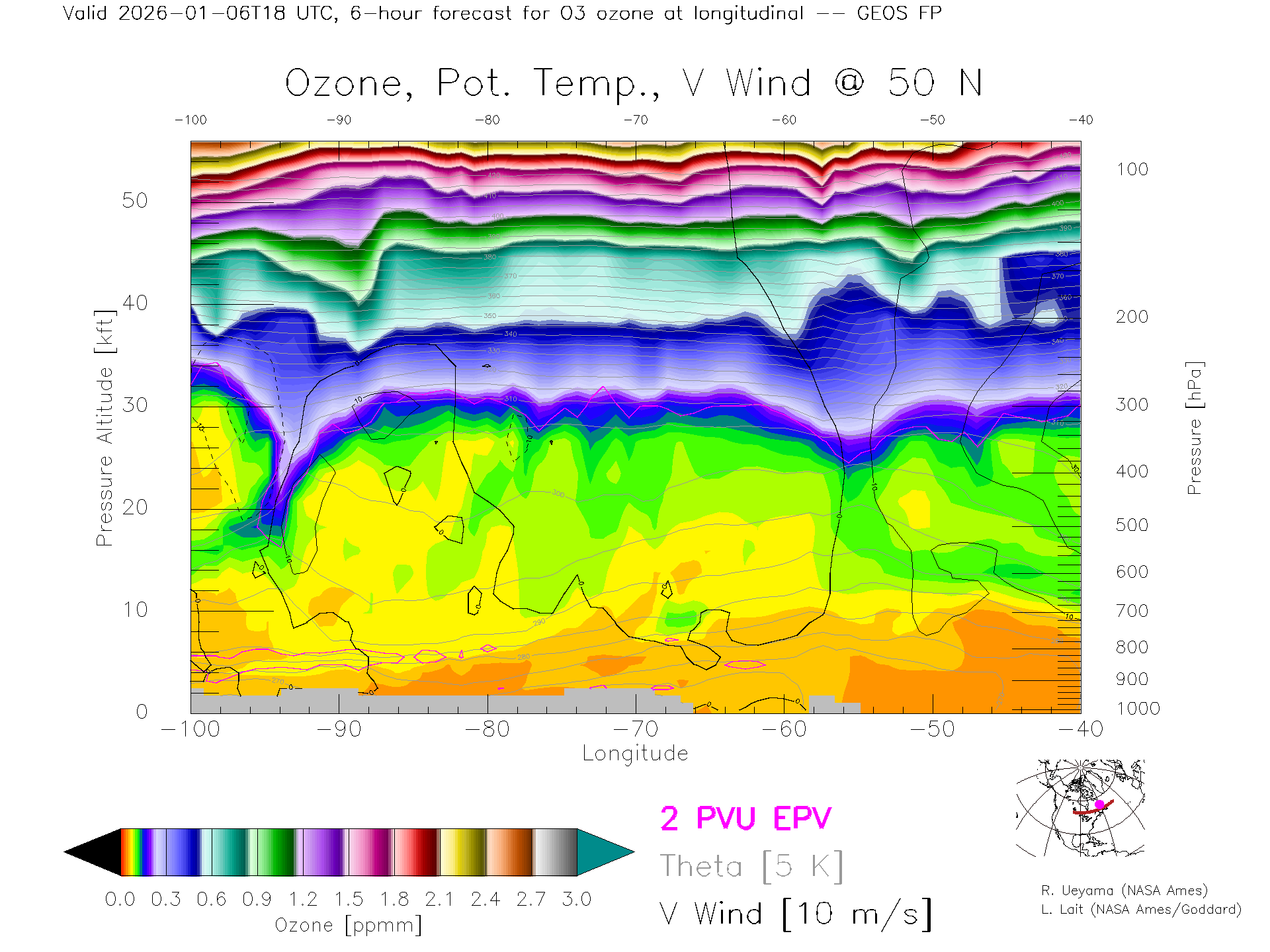 GEOS Forecast Ozone X-Section (50 N)