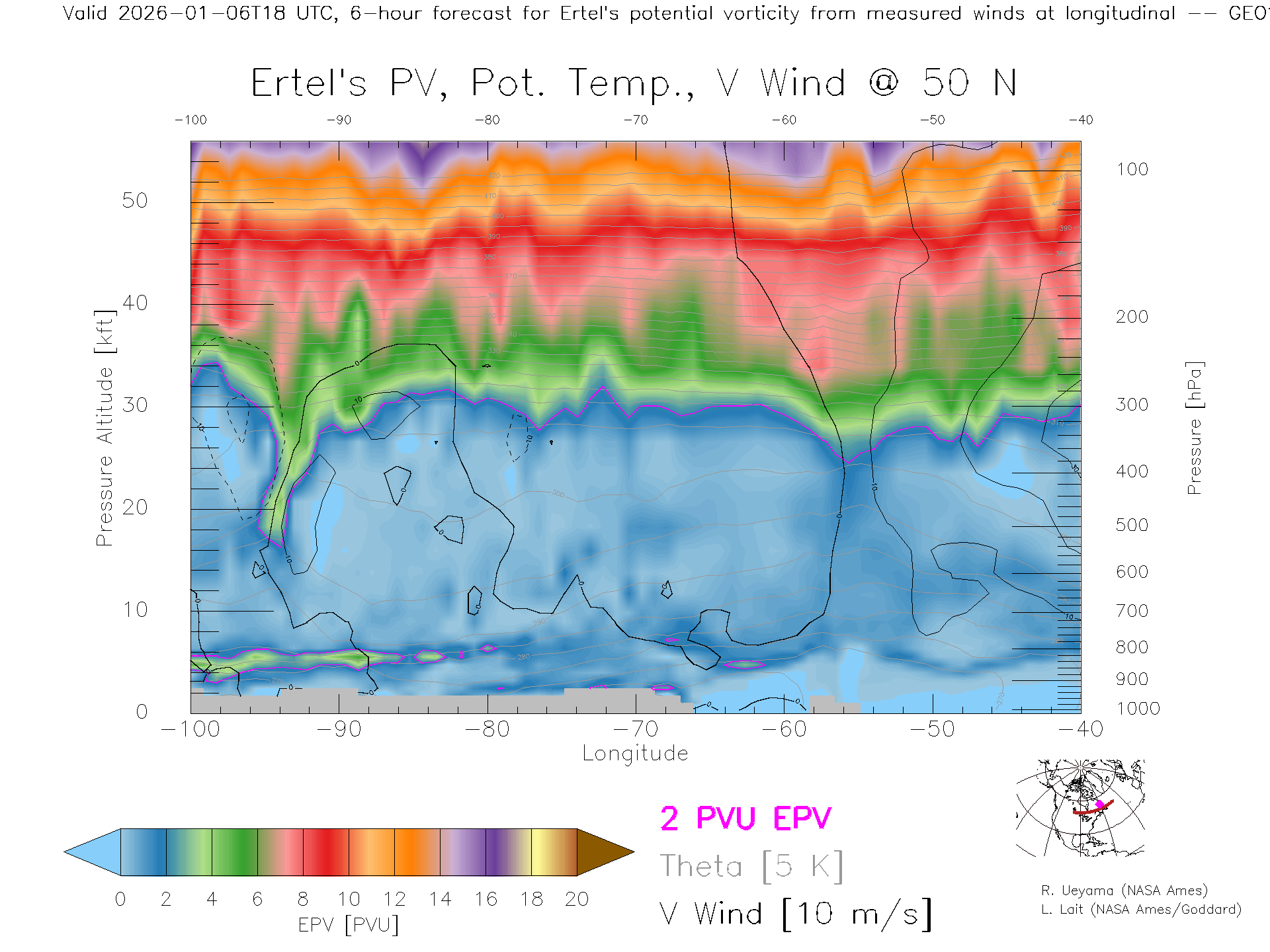 GEOS Forecast PV X-Section (50 N)