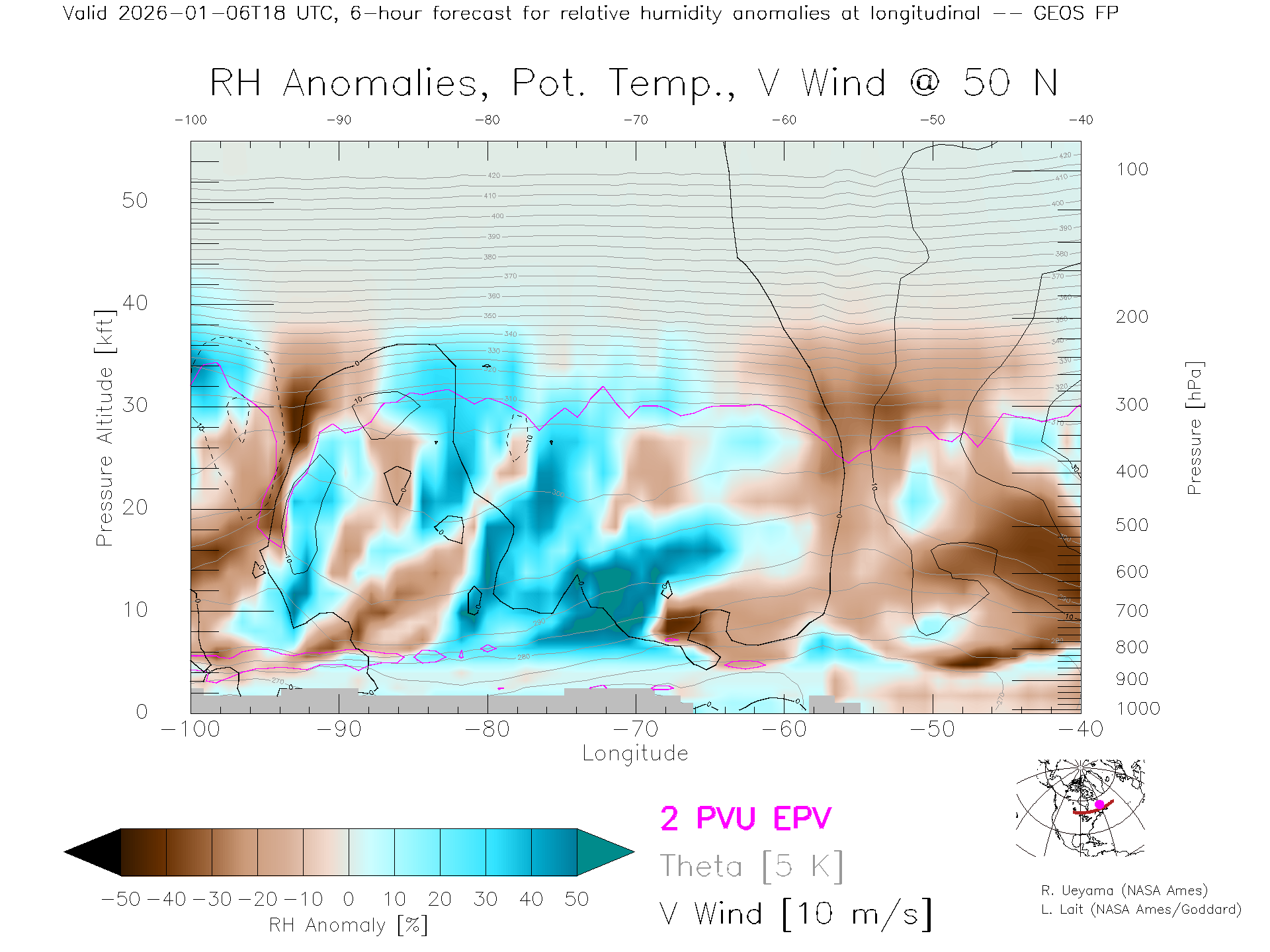GEOS Forecast Rel. Hum. X-Section (50 N)