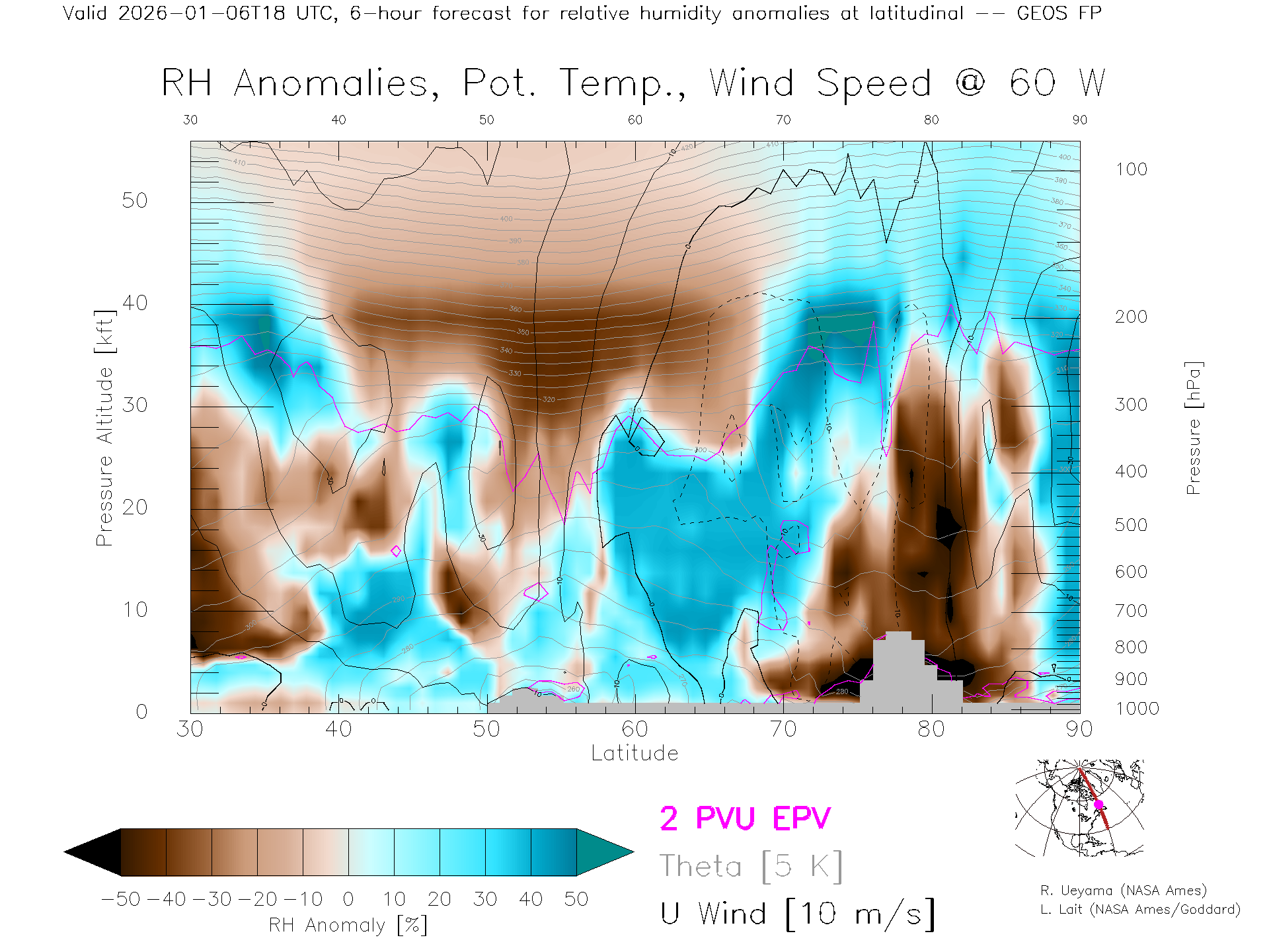 GEOS Forecast Rel. Hum. X-Section (60 W)
