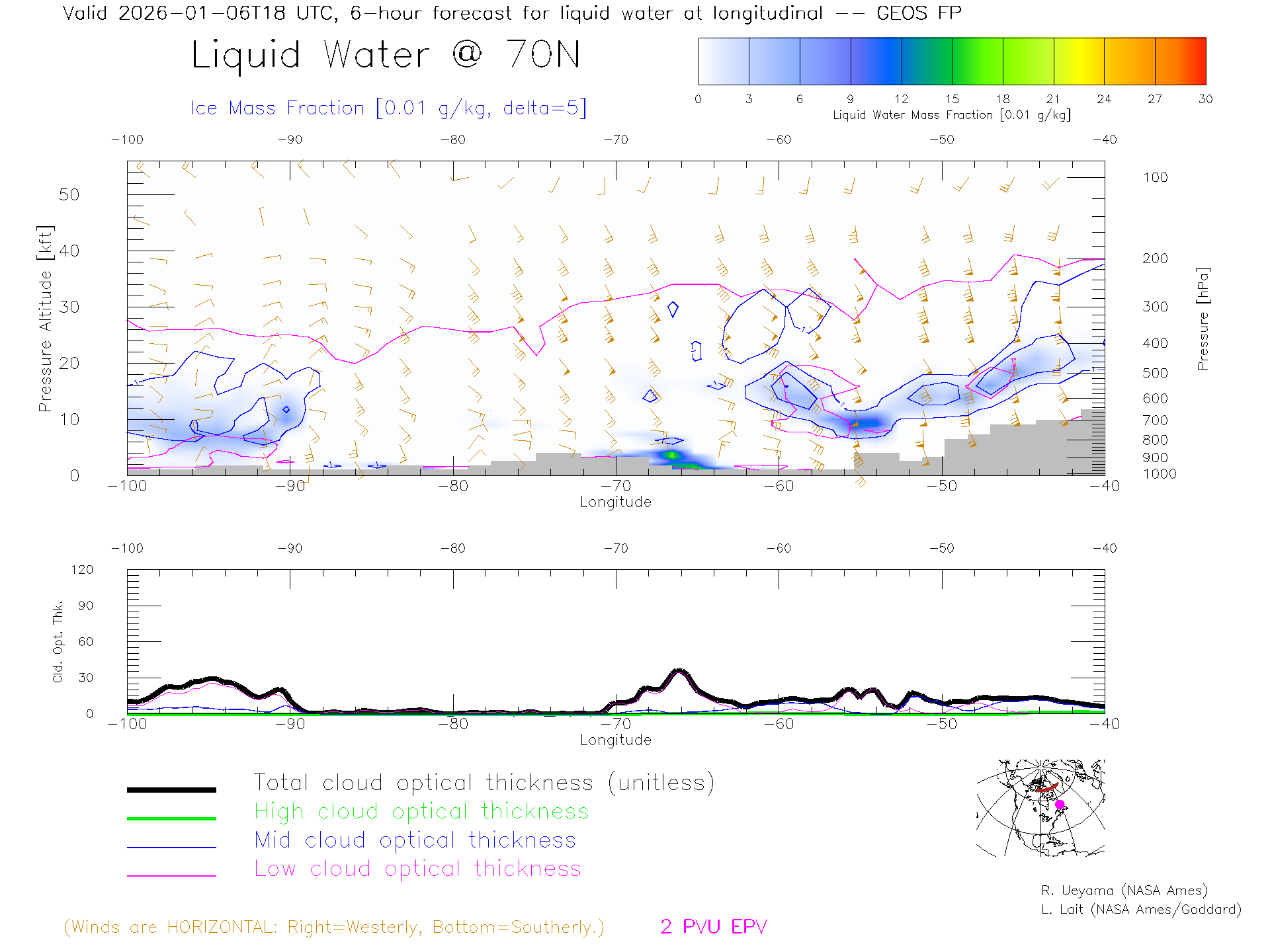 GEOS Forecast Cloud Water Content X-Section (70 N)