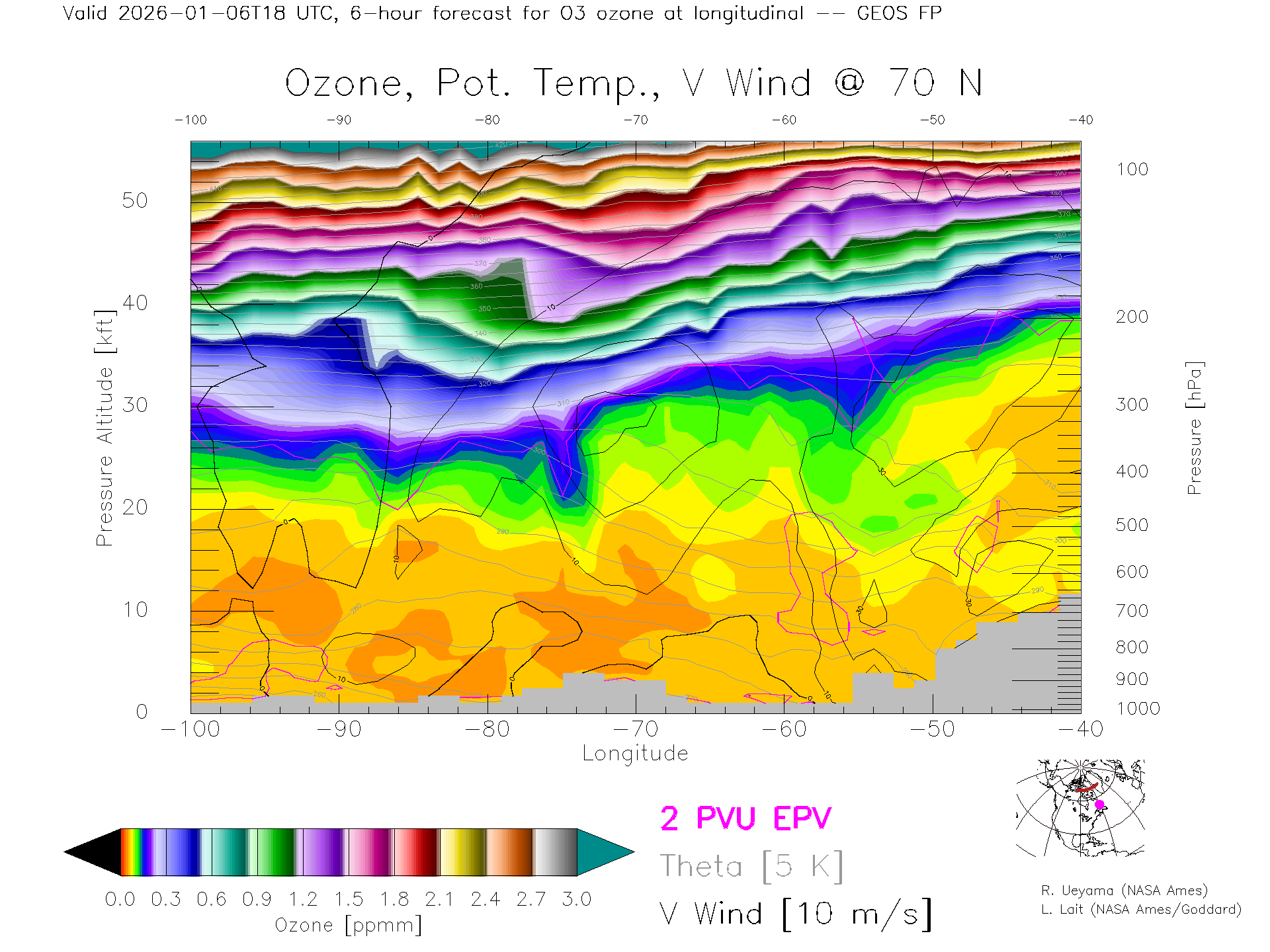GEOS Forecast Ozone X-Section (70 N)