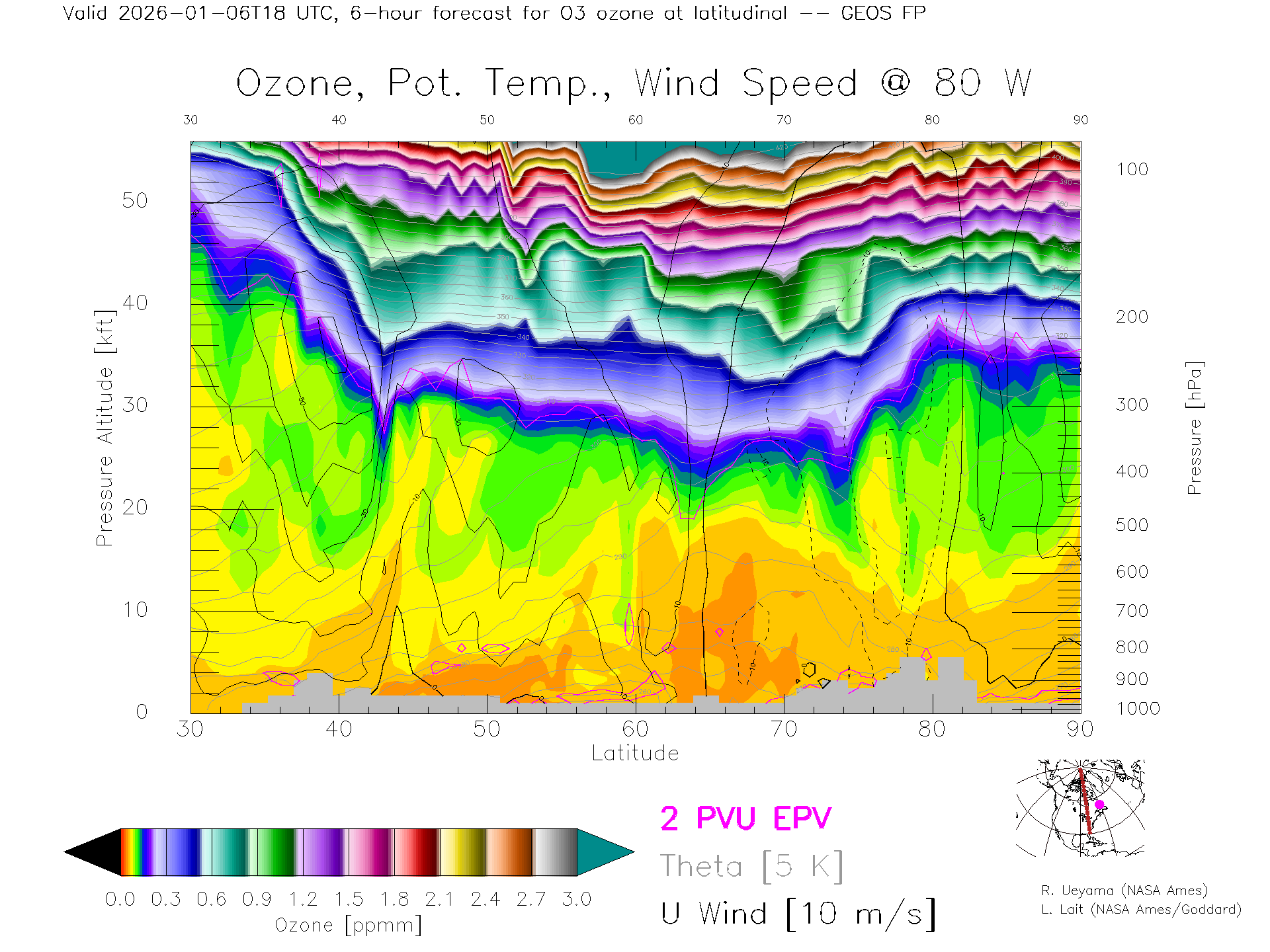 GEOS Forecast Ozone X-Section (80 W)