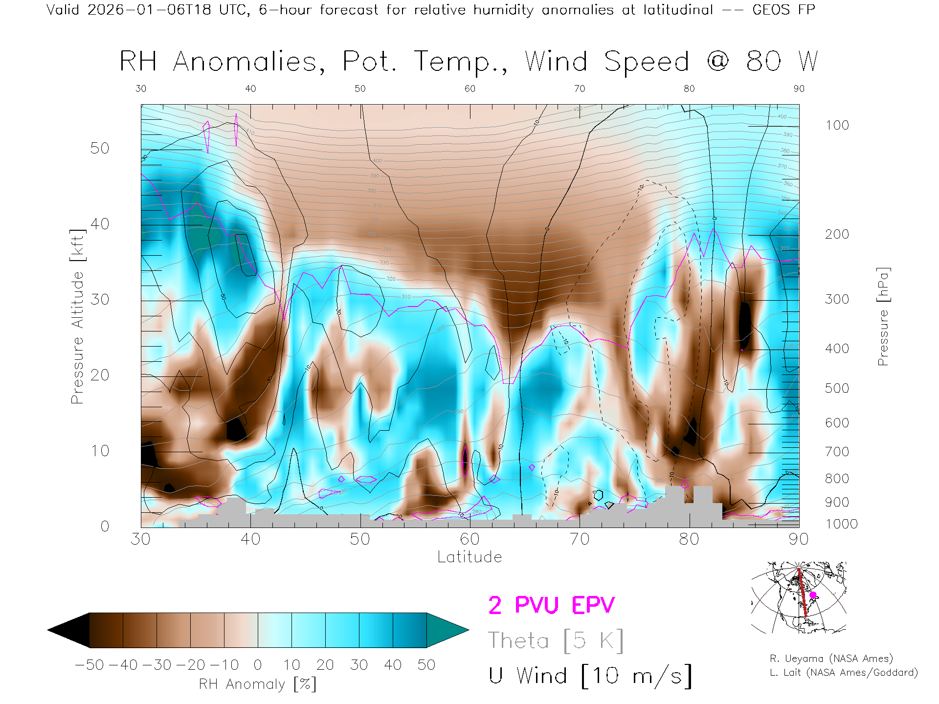 GEOS Forecast Rel. Hum. X-Section (80 W)