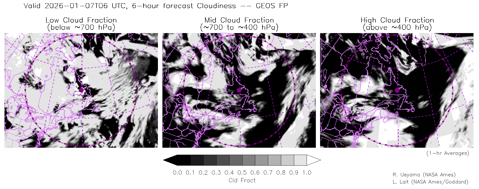 GEOS Forecast Cloud Fraction (High, Mid, Low)