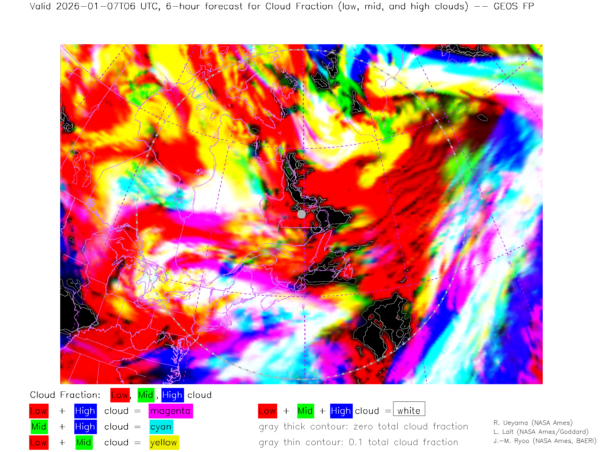GEOS Forecast Low-, Mid- and High-level Cloud Fraction