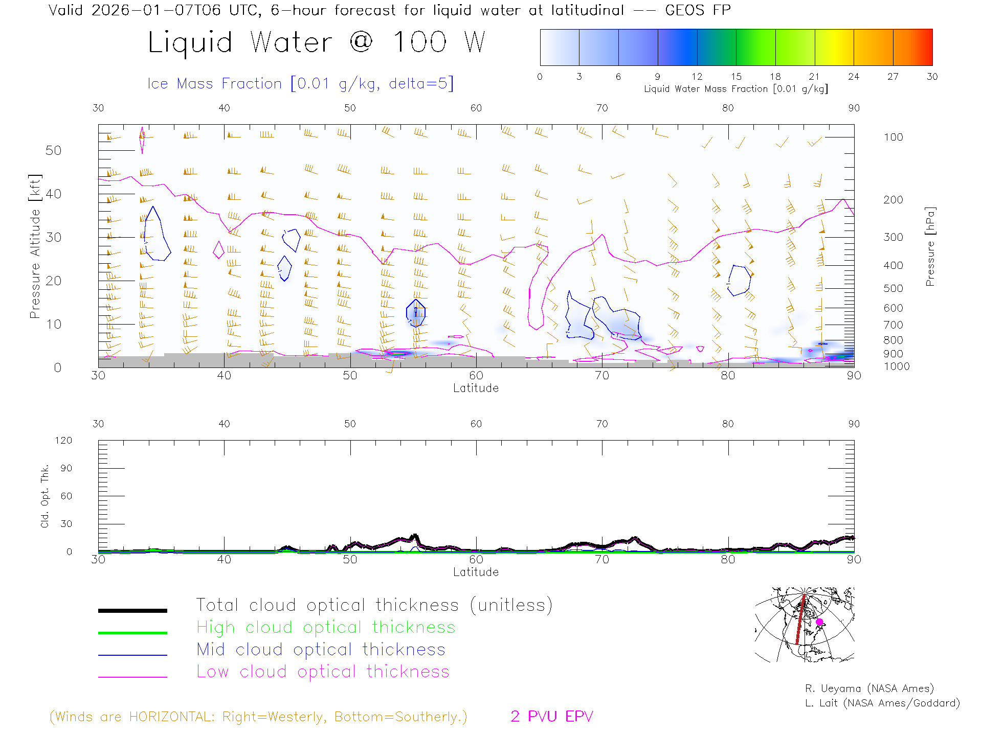 GEOS Forecast Cloud Water Content X-Section (100 W)