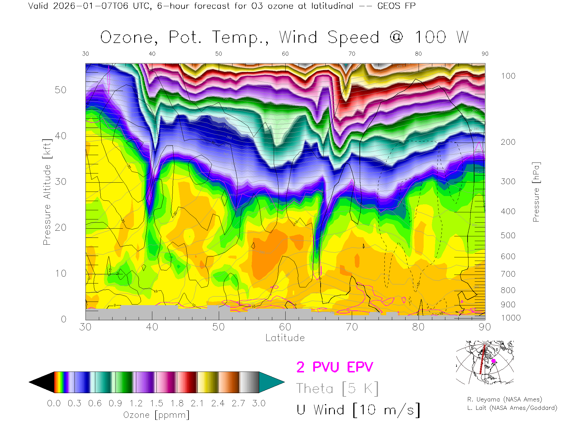 GEOS Forecast Ozone X-Section (100 W)