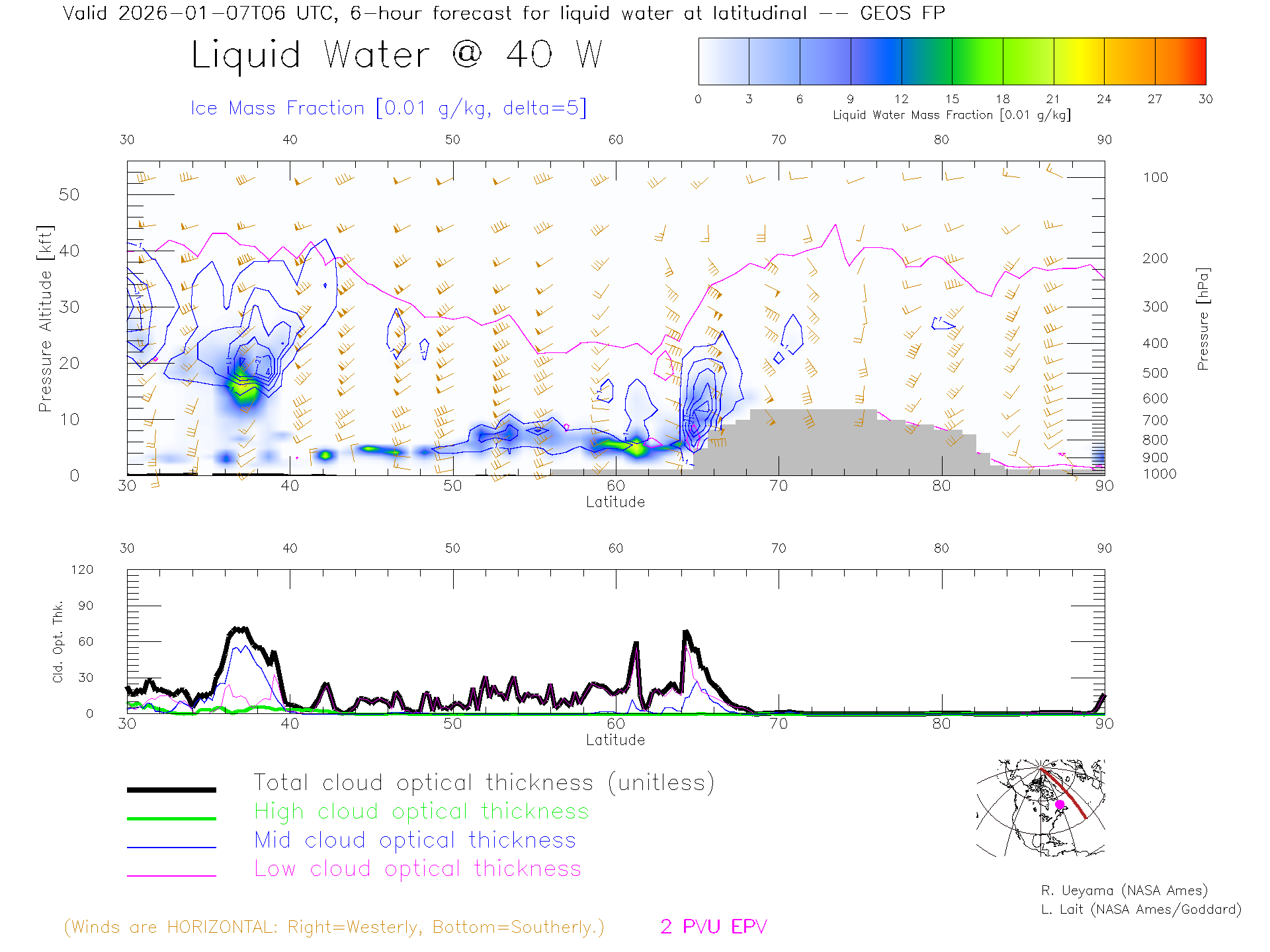 GEOS Forecast Cloud Water Content X-Section (40 W)
