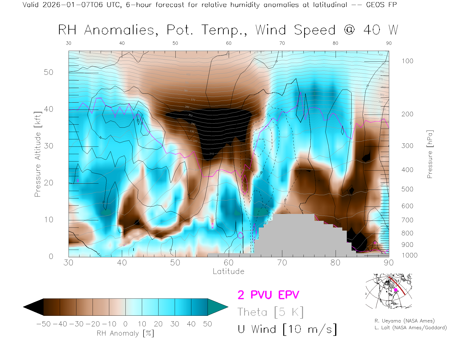 GEOS Forecast Rel. Hum. X-Section (40 W)