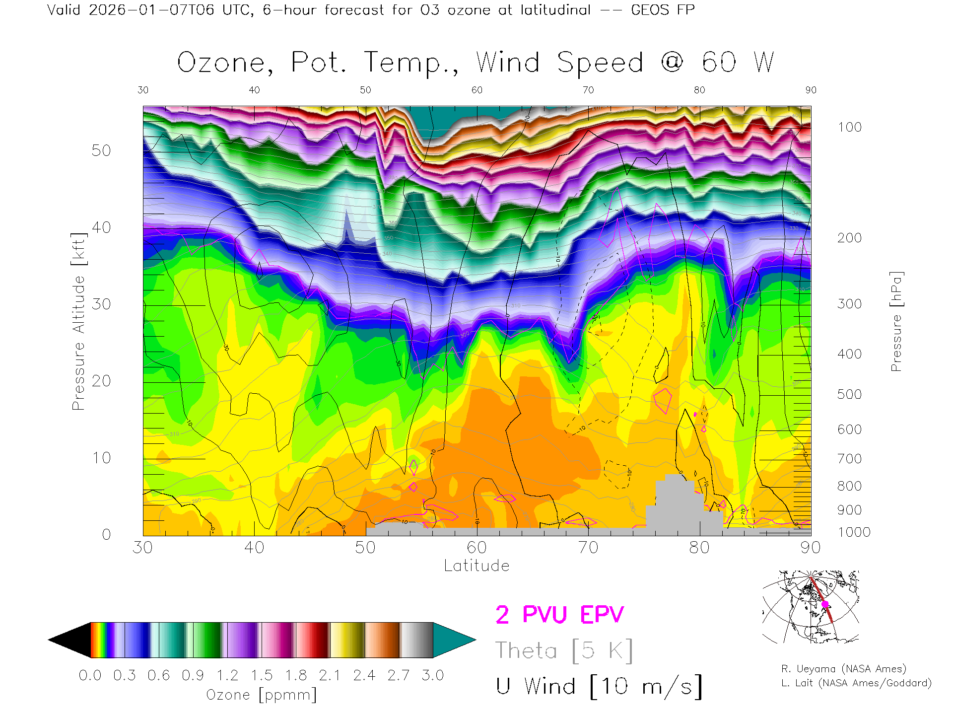 GEOS Forecast Ozone X-Section (60 W)